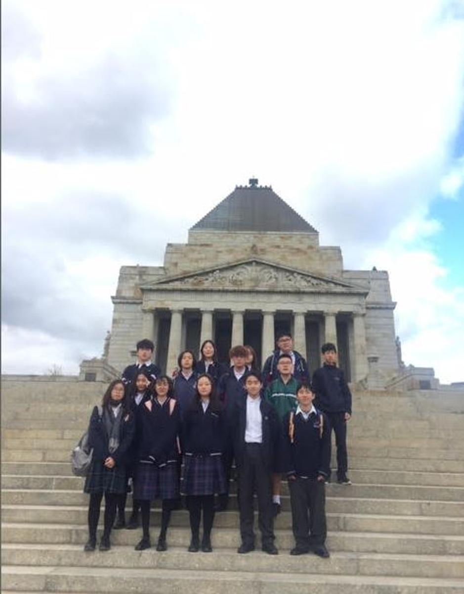Our first venue was the Shrine of Remembrance. Kevan, our tour guide, was a very compassionate and considerate person when he explained a lot of WWI history in detail. He also shared his own family involvement during world wars. When Kevan showed us the video to briefly explain WW1, I thought about the worst war the poor soldiers had to experience and how terrible environment they had to be placed in. After watching, Kevan, a navy veteran, explained one of the permanent exhibitions, a safety ship, which held 60 soldiers to land at Gallipoli. I felt the WW1 was very terrible and thought that the soldiers were very brave, patriotic and willing to sacrificed themselves for their country. When we headed to the sanctuary, you would see the stone in the middle. The sentence ‘’GREATER LOVE HATH NO MAN ‘’ was inscribed on the stone. While sunlight fell directly on the Stone of Remembrance, we had two minutes’ silence. Miss Song told us the ceremony would be conducted at 11:00 am everyday. Because the WW1 finished at 11:00 on 11th November, people commemorate during Remembrance day. I experienced this solemn place and paid my respect to fallen soldiers. When we came from “John Simplon with Donkey Statues”, Ms Song led us to the eternal flame and mentioned it symbolised eternal life for those who have died.