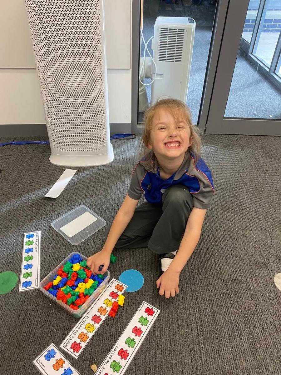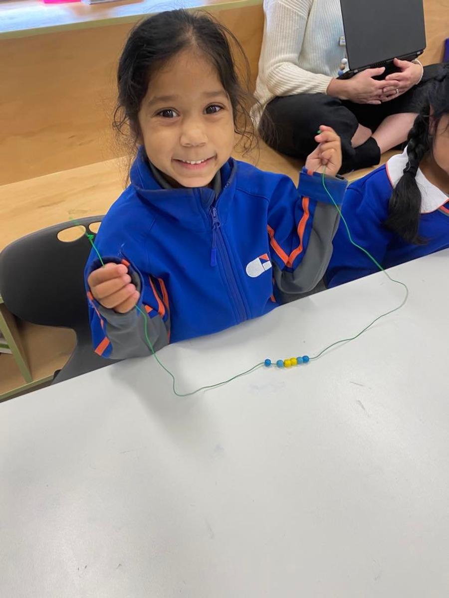This week our focus in Maths shifted from data and we began learning about different types of patterns. We explored using hands on manipulatives, simple AB patterns, AABB patterns and ABC patterns. It was so great to see the students using their creative brains to make different types of patterns using coloured blocks, different shapes, coloured beads, coloured teddies, different dance moves and drawings.