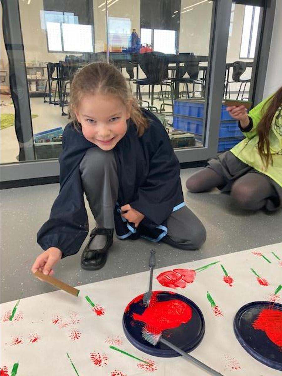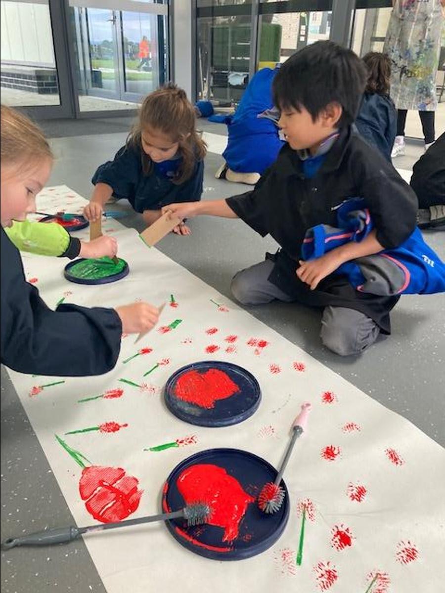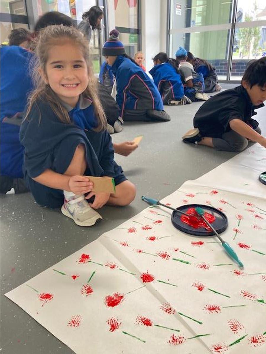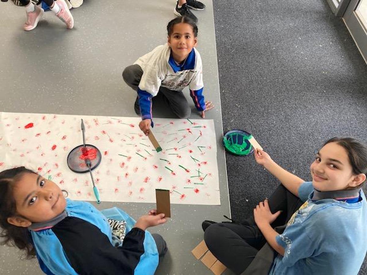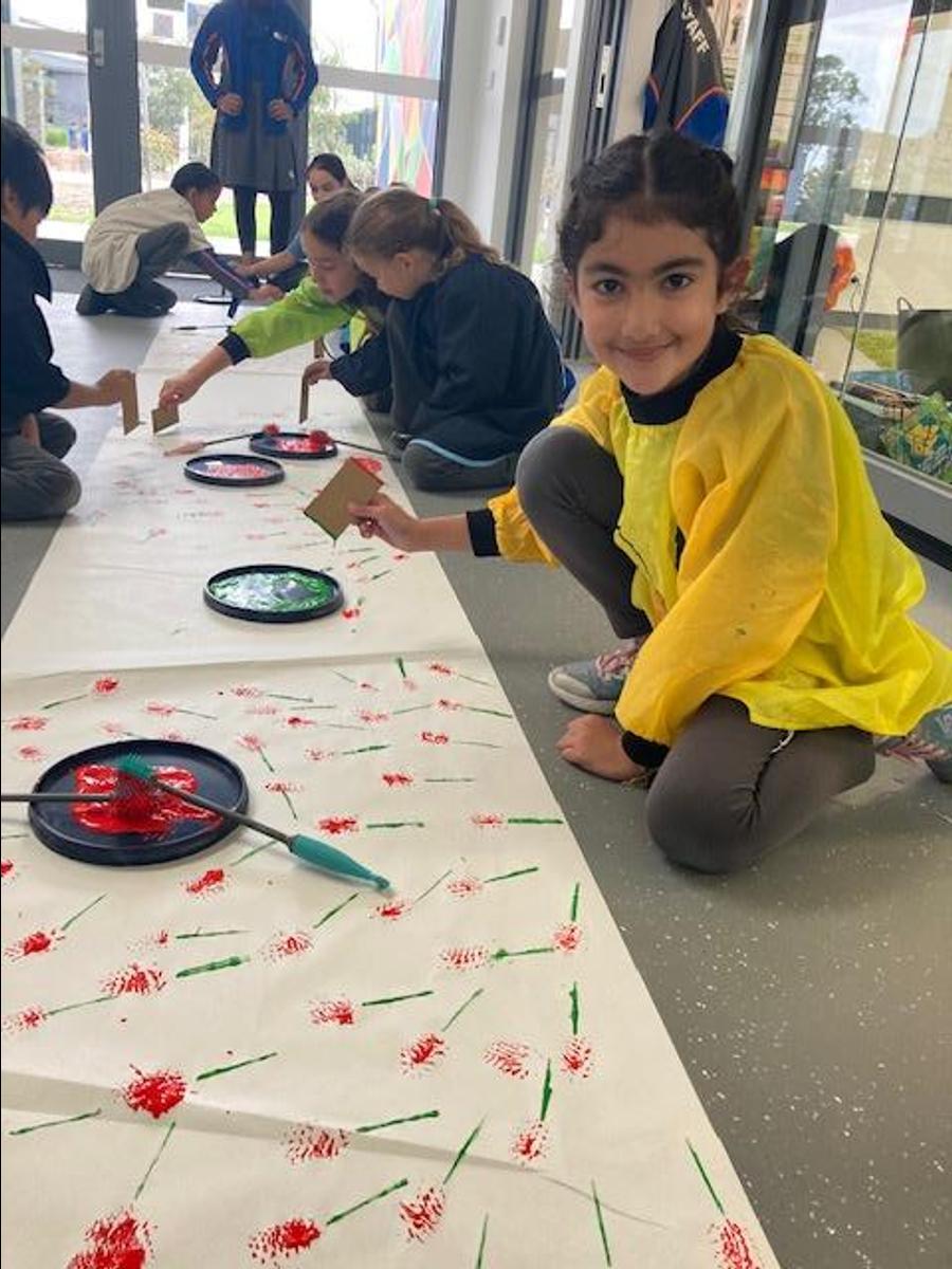 And our Junior club (Grades 1-3) are creating beautiful wrapping paper to sell in the Front Office. We’ve begun using alternate painting tools to create native Australian flowers. I was especially impressed with the team-work of the junior artists last week. A special thank you needs to go out to some amazing Grade 4 & 5 students who volunteered their time to help me.