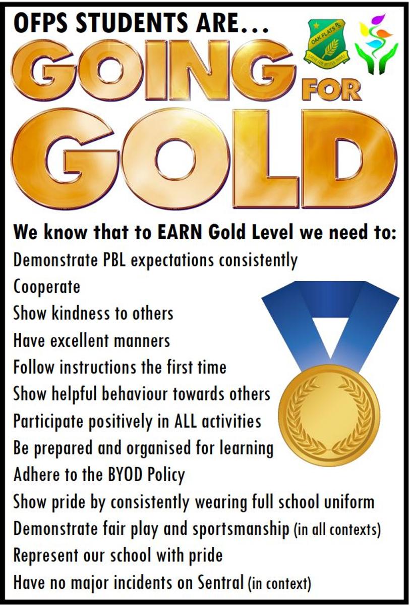 With our term and the school year rapidly coming to an end, many students are working towards achieving Gold Level. Below is an overview of our school merit system, awards and criteria for achieving gold.