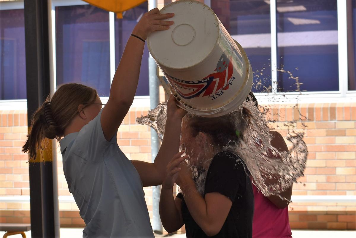 Lourdes held a Pizza day and Loreto invited those with money to donate, the opportunity to target our volunteer student leaders and House Leader Miss Brooks with water balloons.