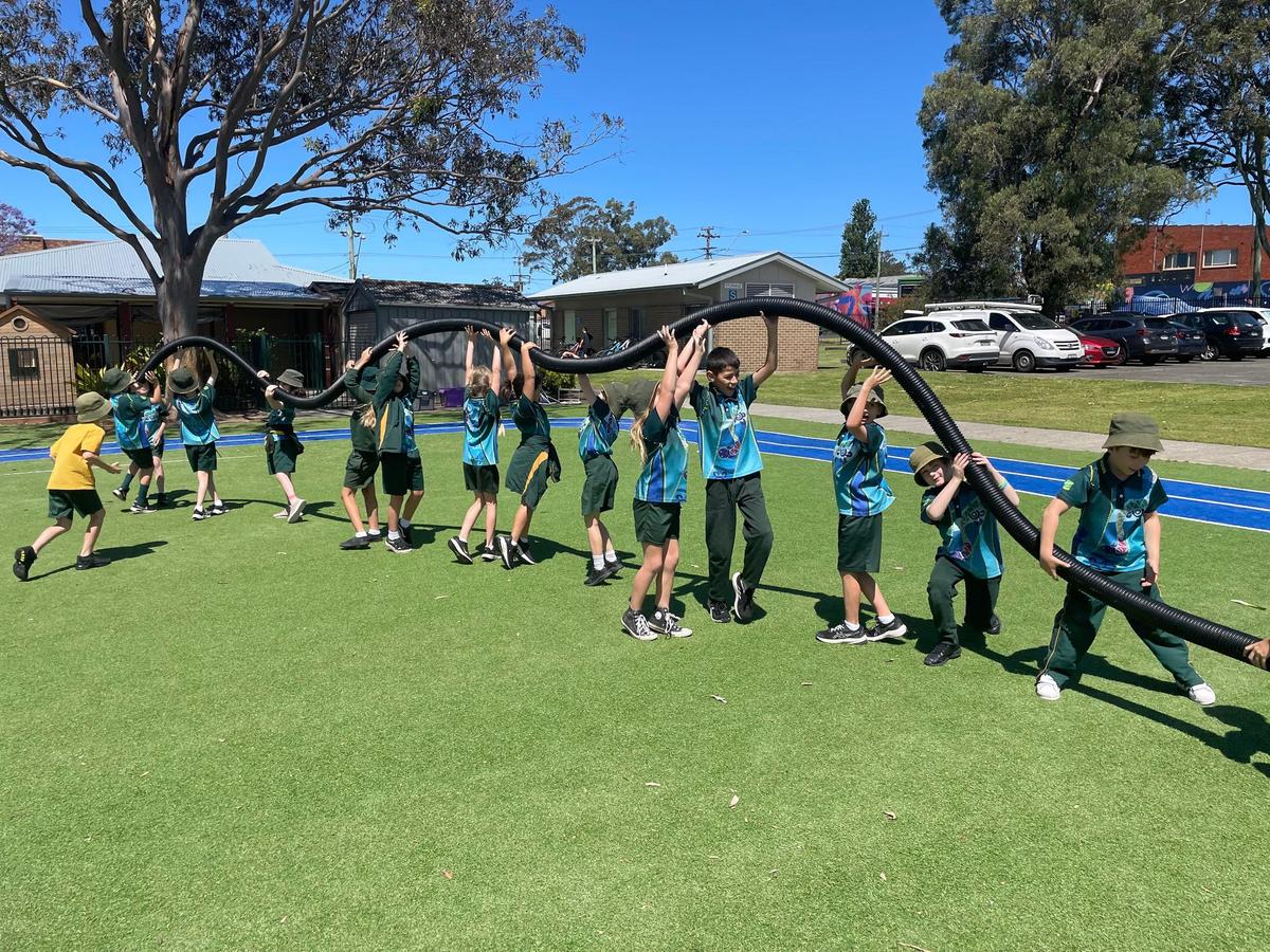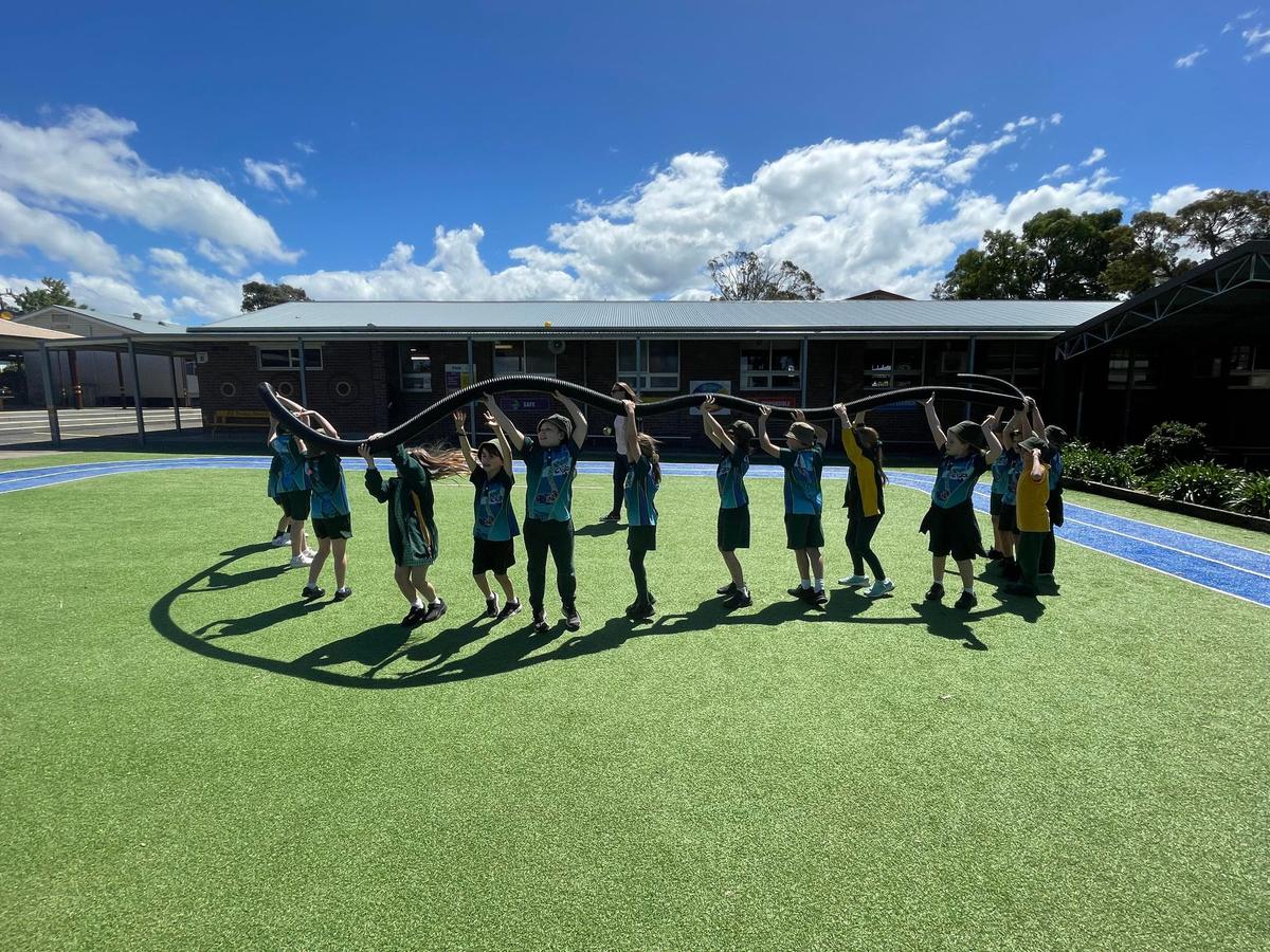 We have also been participating in traditional Indigenous games in Physical Education. Students have played juluhya a favourite pastime of the Aboriginal children in the Numinbah Valley area of south Queensland involving rolling small round pebbles down long sheets of bark, mer kolap an object-throwing game played in the Torres Strait on Mer Island, wana wana a game played by the young Noongar girls in the southwest of Western Australia where one girl uses her wana (digging stick) to stop the other girls hitting a short stick placed on the ground, and battendi a spear and wommera game played by Aboriginal people in the Lake Murray, Lake Alexandrina and Lake Albert areas of southern Australia.