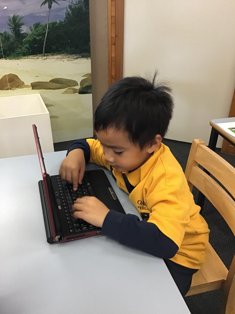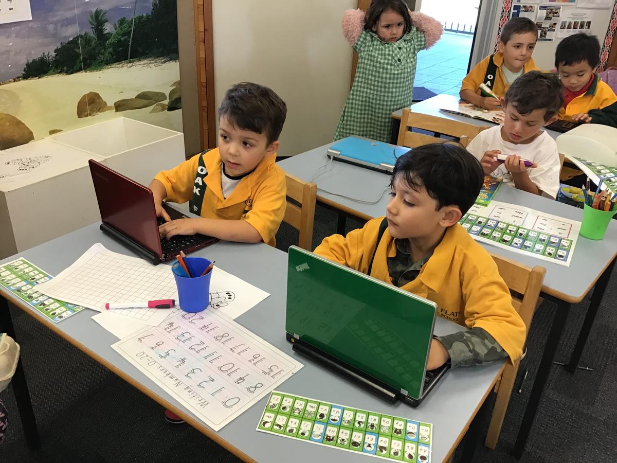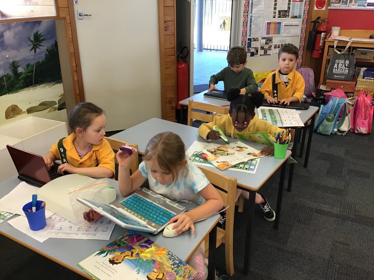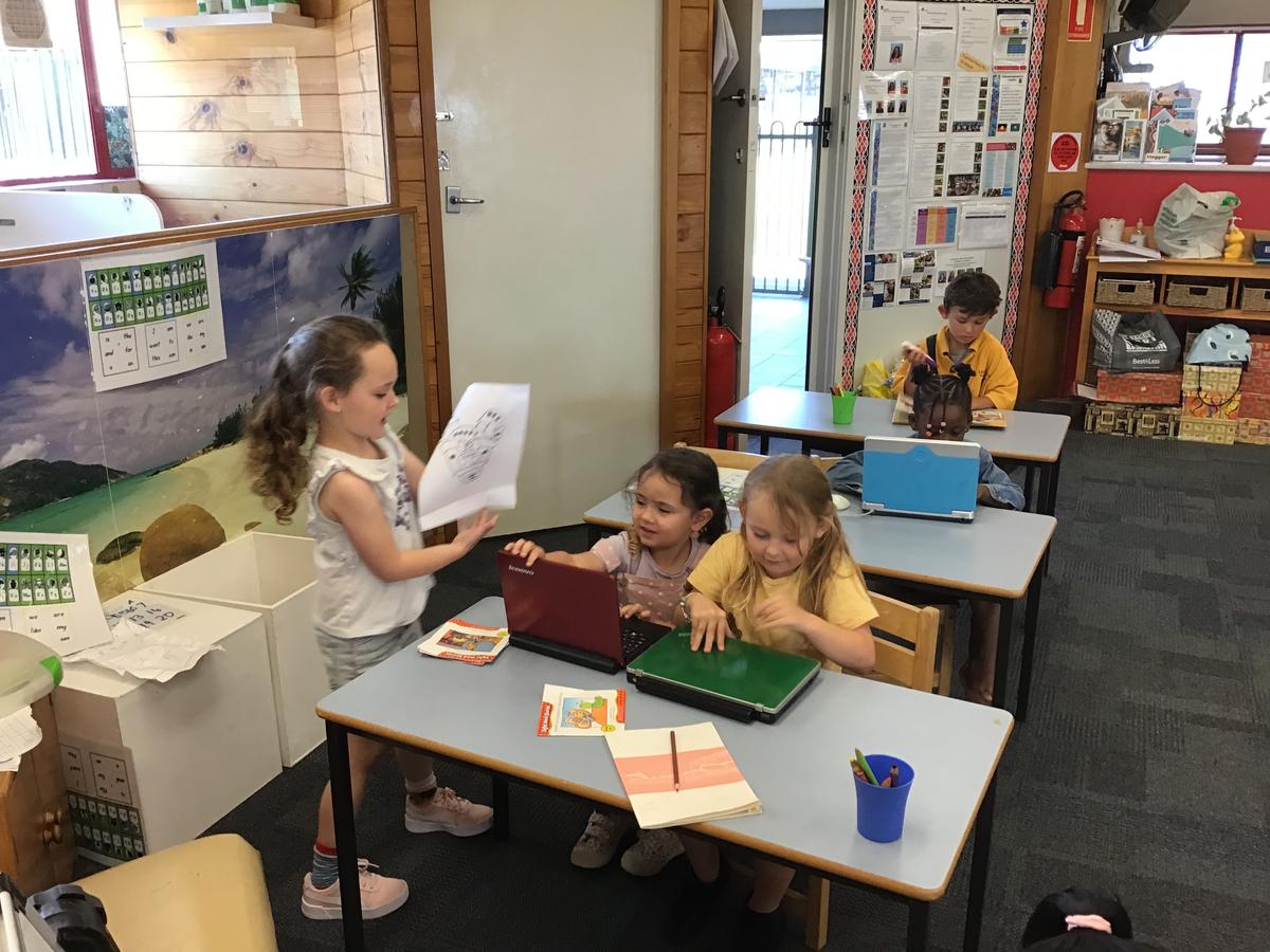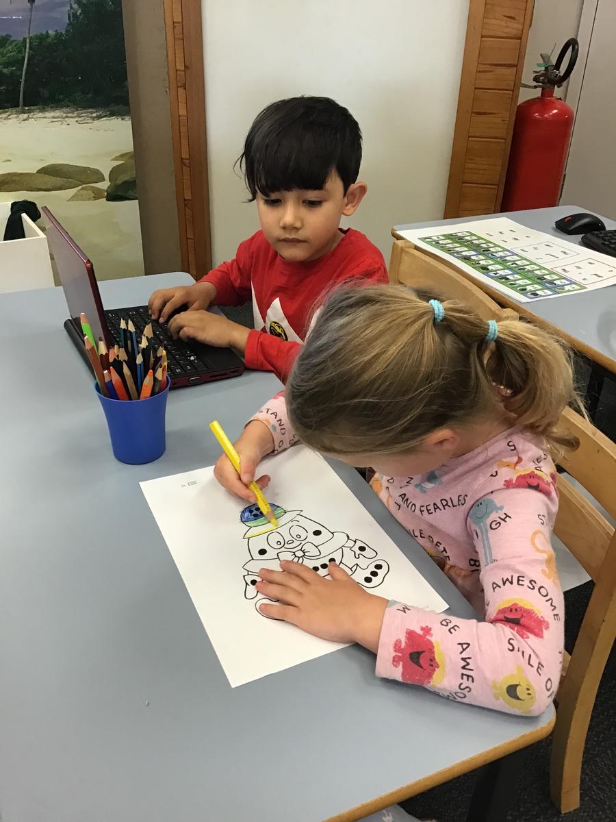 Part of Preschool has become a pretend school classroom. The most popular roles for the children are the Principal and Teacher. We hear lots of interesting conversations as the children imagine what happens in a classroom. The children enjoy putting on the school uniform and completing "schoolwork". Oakie dokies are regularly handed out and some of the children have quite a collection. Dramatic play in a pretend school is part of our transition activities. It helps to dispel preconceived ideas and anxieties about school.