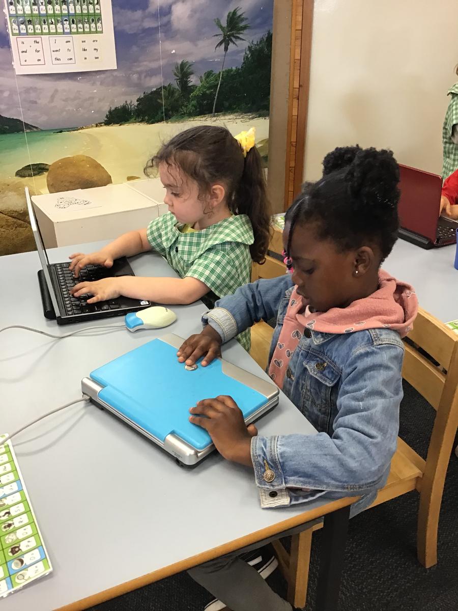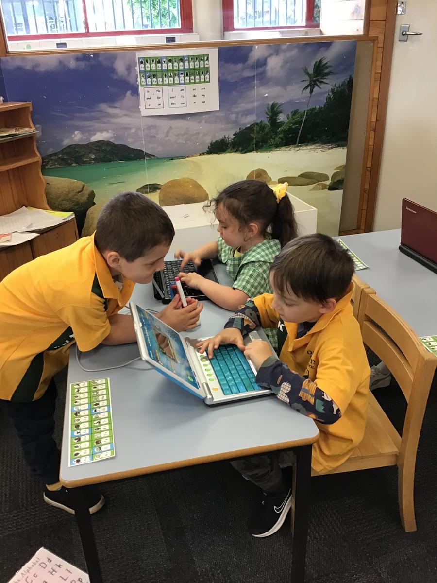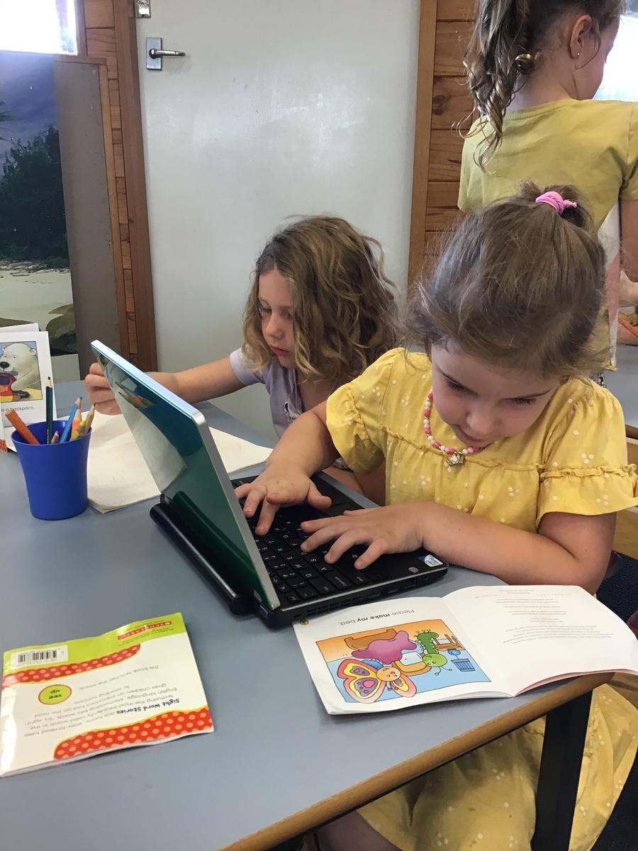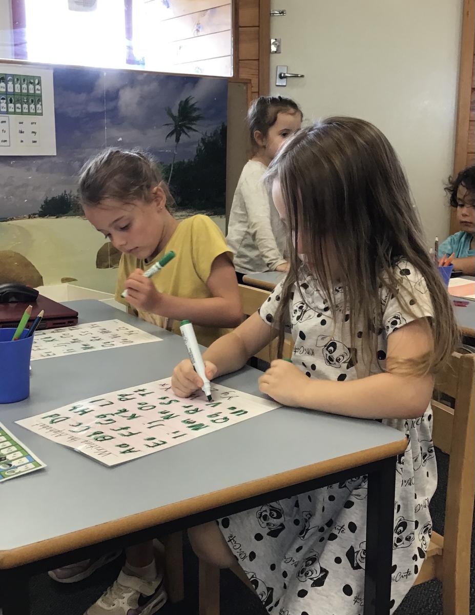Part of Preschool has become a pretend school classroom. The most popular roles for the children are the Principal and Teacher. We hear lots of interesting conversations as the children imagine what happens in a classroom. The children enjoy putting on the school uniform and completing "schoolwork". Oakie dokies are regularly handed out and some of the children have quite a collection. Dramatic play in a pretend school is part of our transition activities. It helps to dispel preconceived ideas and anxieties about school.
