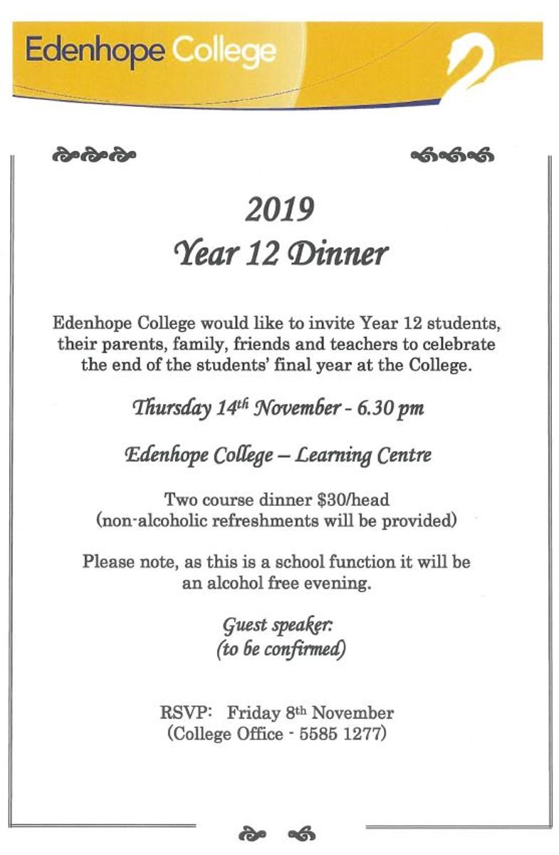 Invitations to the Year 12 Dinner next term have also been sent out this week to students and their families.