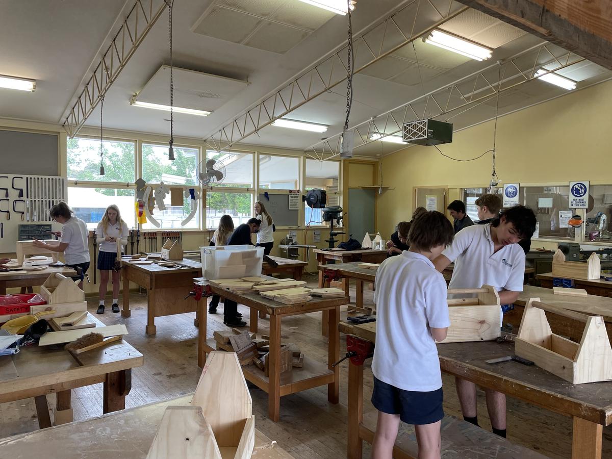 Years 8 students are creating tool case carriers for an end user of their choice, working from their own designs and specifications. They have practiced a range of woodworking skills putting their knowledge into designing their tool case carriers, using a range of joints to create a solid end product.