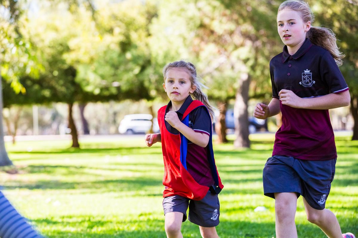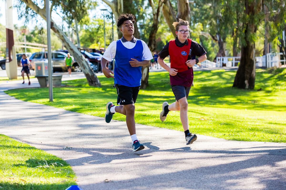 The first Friday in May was a gorgeous one, perfectly suited to a delicious BBQ, leisurely stroll in the park, and competitive cross country running. Students under 9 years of age negotiated the Jaycee Park circuit for the second year in a row, while older students ran a brand new return track, starting near the tennis club, passing by Café 1909 and the wharf on the way to the Chaffey bridge and back. Parents and friends gathered at the newly-acquired inflatable start finish arch, providing encouragement and a festival atmosphere, applauding and cheering as runners were welcomed to the finish line.
