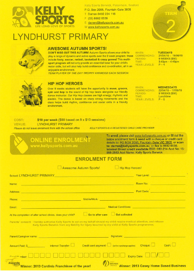 The Awesome Autumn Sports program runs after school on Tuesdays for P, while the Hip Hop Heroes program runs on Wednesdays at lunchtime.