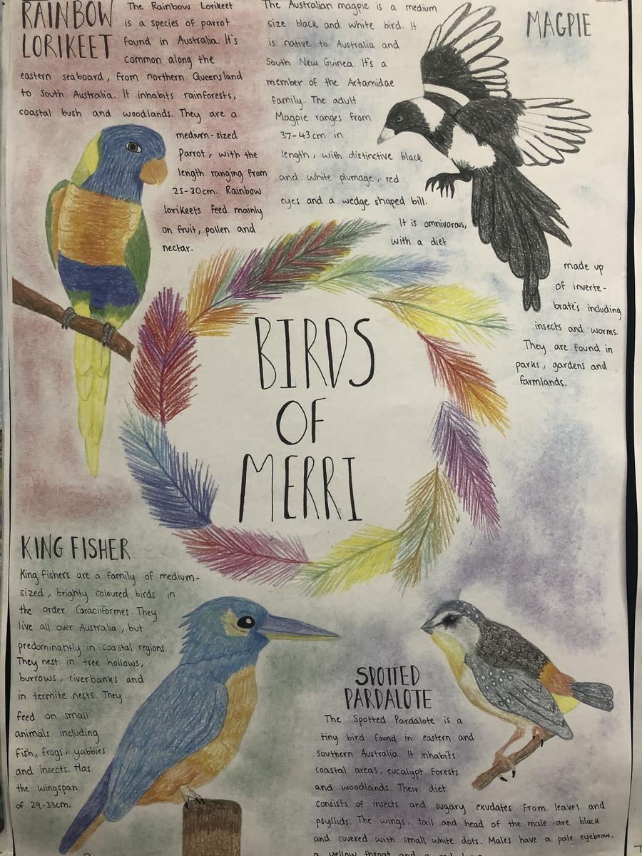 Year 9 visual communication students are presenting their stunning response to the “Merri Creek Trail” brief, as the unit comes to a close. Students engaged in primary research trawling through Merri creek surrounds, drawing from observation or using photography. Through exploration of material, techniques and processes they developed their own visual language to depict the trail and highlight the local flora and fauna. The show will be up until the end of term in the Beugelaar Gallery, C block, all welcome.