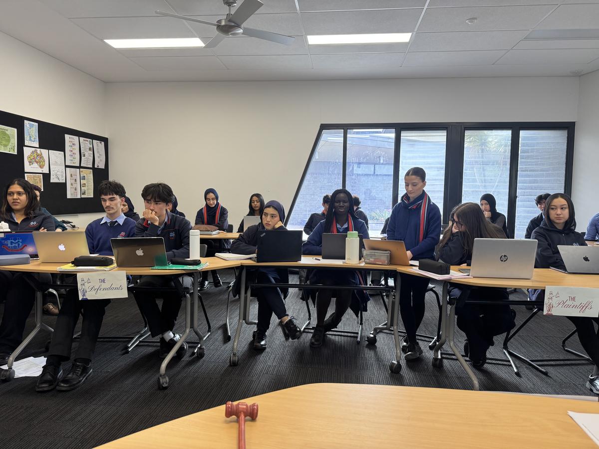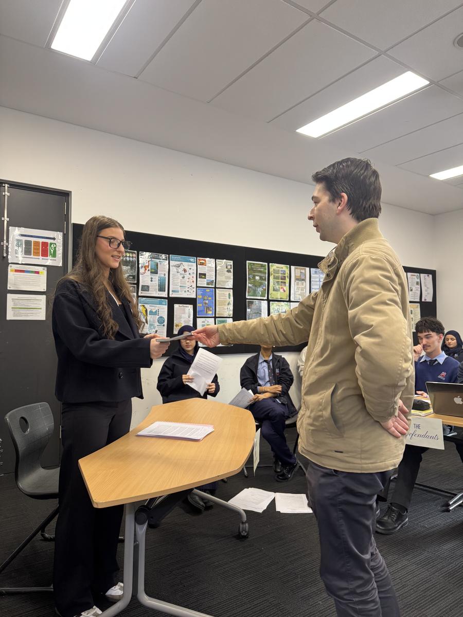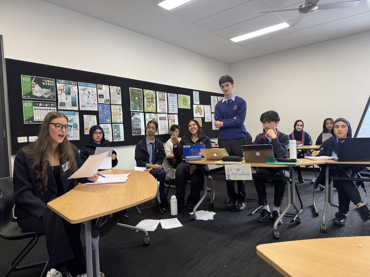 The Year 11 Legal Studies class took part in a cross-class Mock Trial for their latest SAC. Students took on roles of the plaintiff, defendant, lawyers, witnesses and the jury. It was a fantastic effort from all students involved. They were able to apply key skills and knowledge to a real world scenario while also getting an opportunity to get creative, particularly with their evidence!
