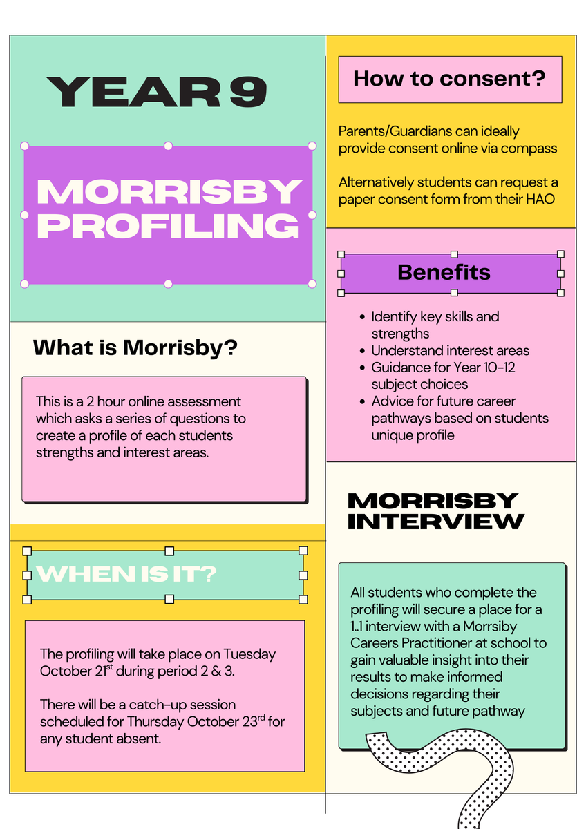 Year 9 students will be involved in Morrisby Profiling next Term. Take a look at the flyer for more information!