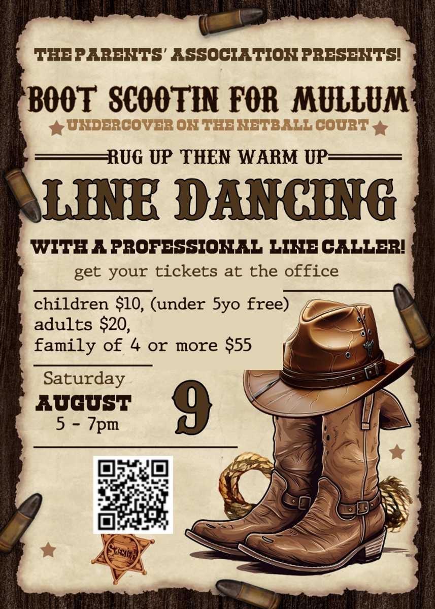 It's Mullum's only whole family fundraising event for 2025. Dress warmly and come and enjoy a night out line dancing with your family.
