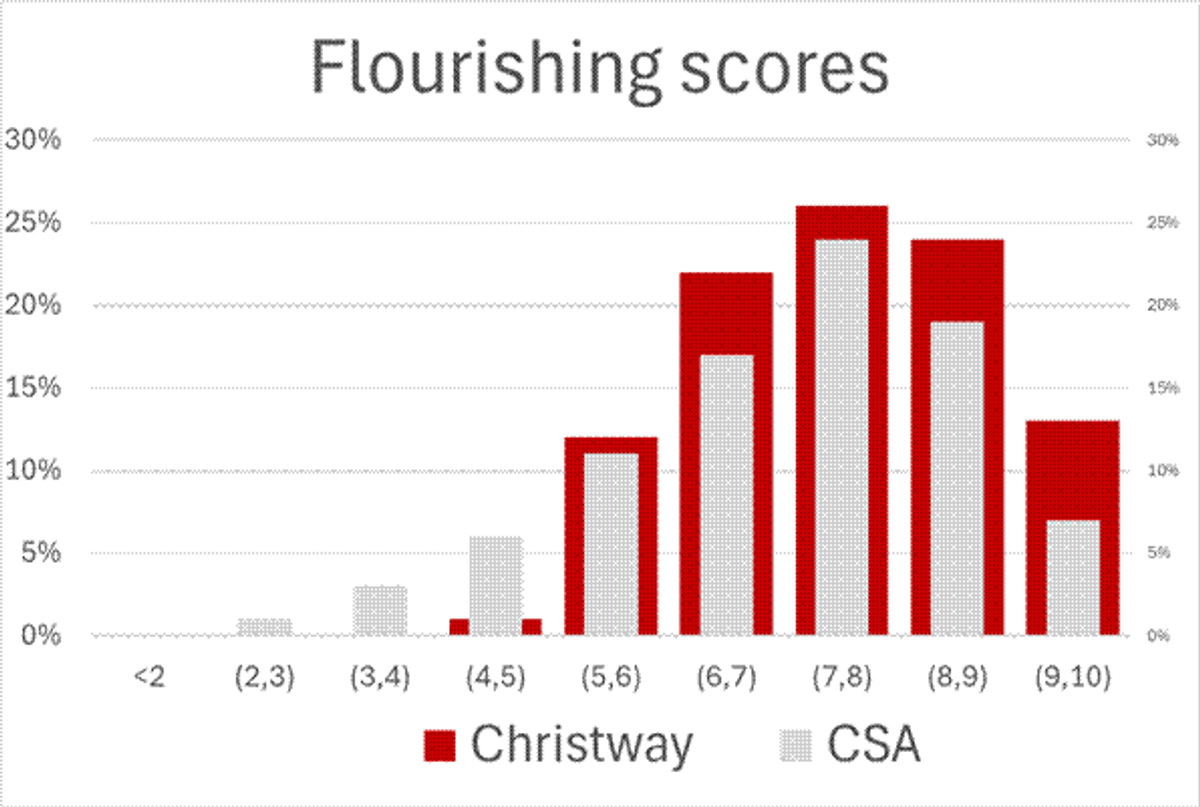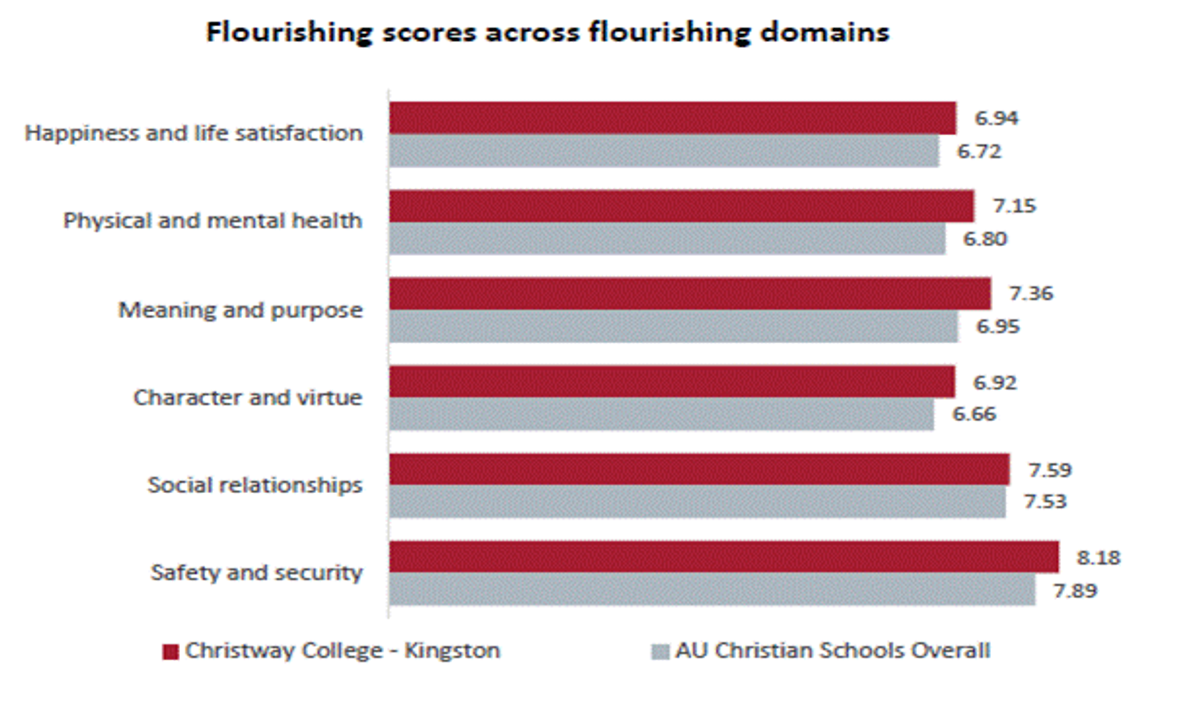 Our students can be shown to be flourishing in every area surveyed. This is a testament to the overtly godly, spirit-filled, and entirely delightful environment that we have here at Christway.
