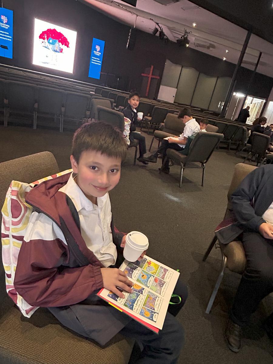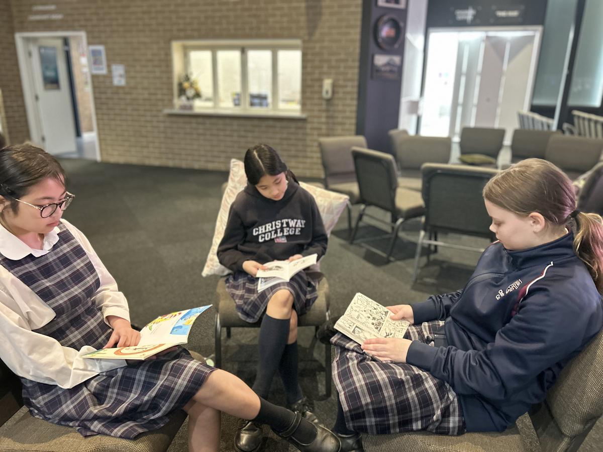 We celebrated Book Week 2025 on Monday 25 to Thursday 28 August. Throughout the week the auditorium and Living Room were transformed into a cosy reading space. Students were encouraged to bring a book, cushion, and blanket to enjoy some quiet reading time with a hot chocolate.