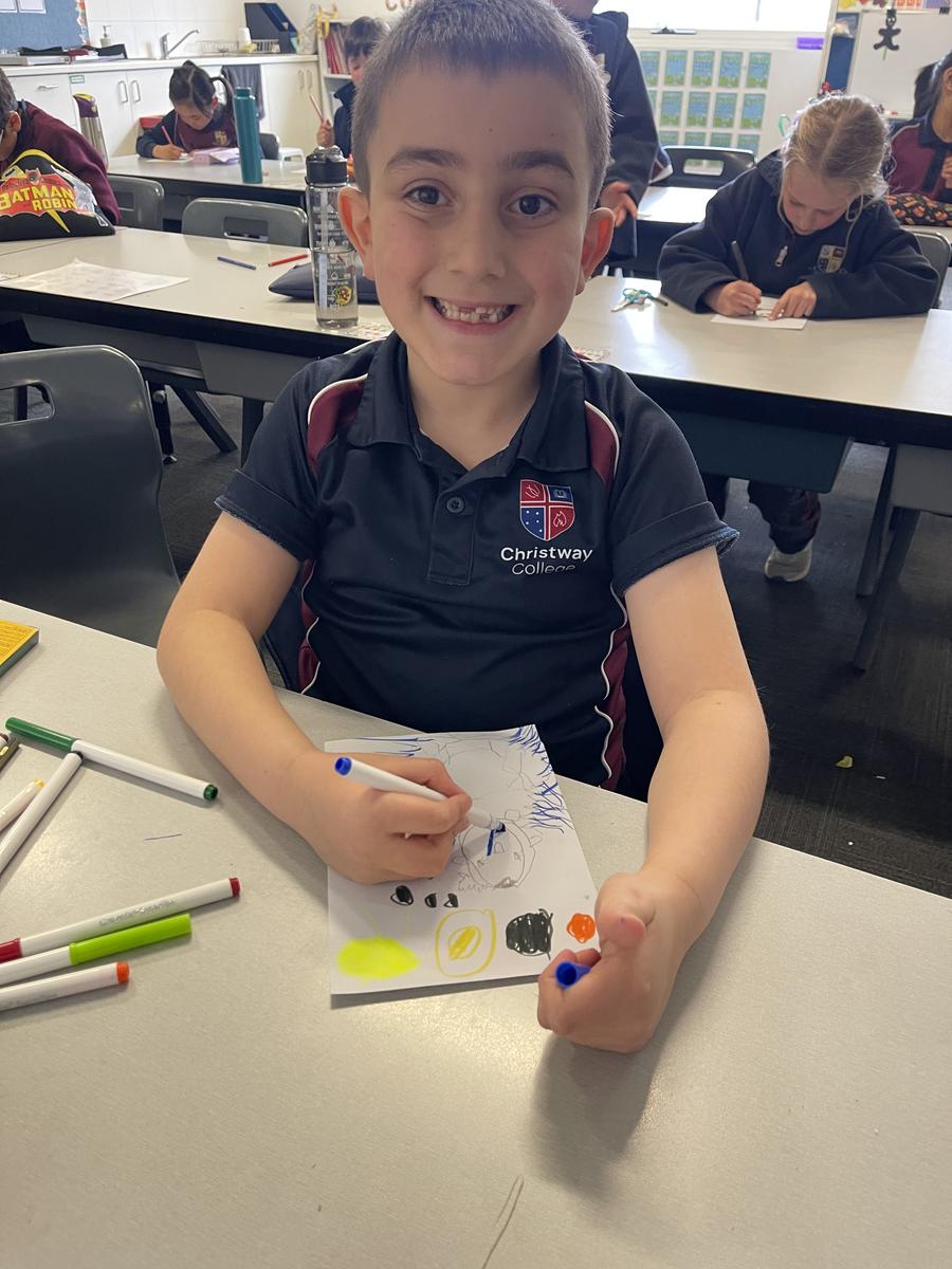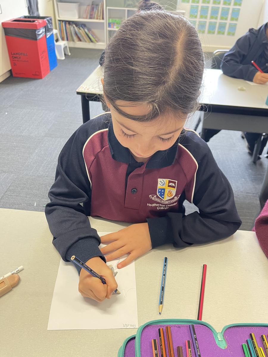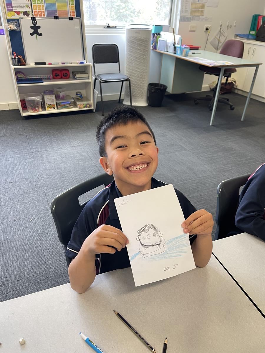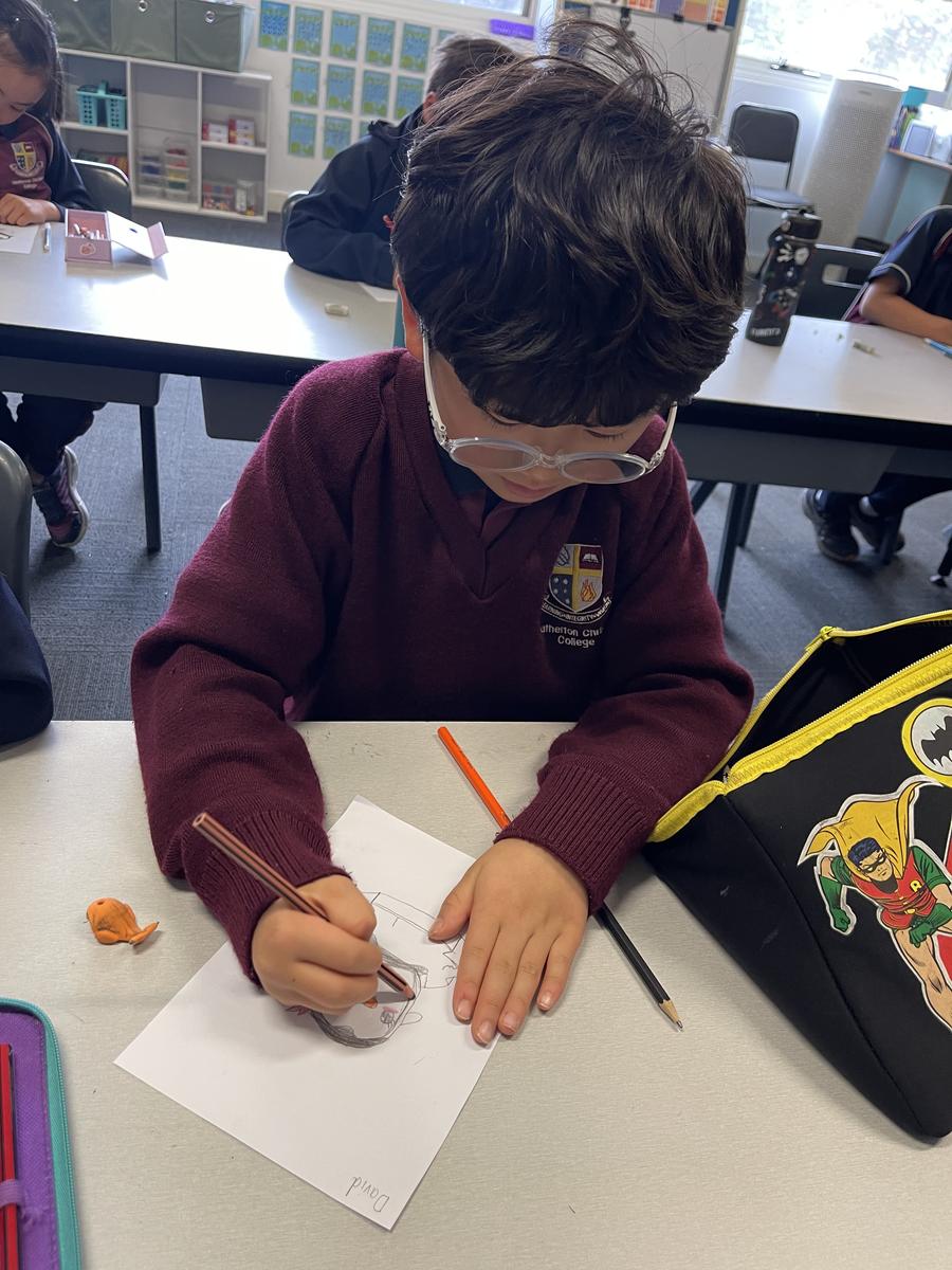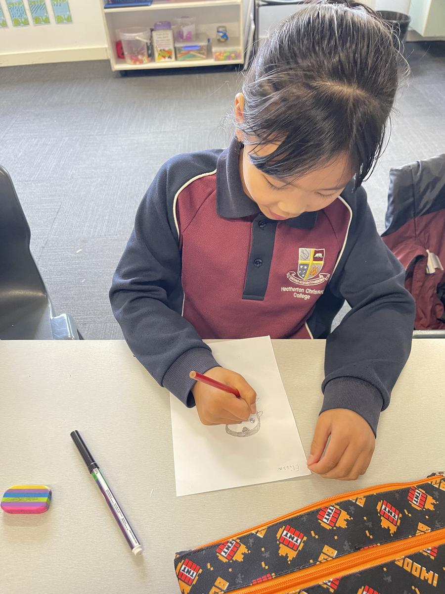 Mrs Rose read Jonty Gentoo by Julia Donaldson with Grade 1s and 2s, sparking conversations about kindness, followed by guided drawings and recount writing.