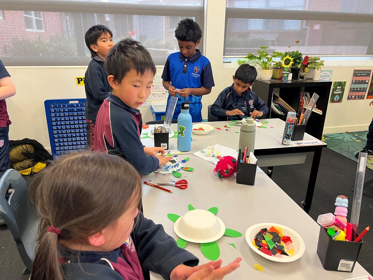 Miss Antoniou shared Little Turtle and the Sea by Becky Davies, reminding students about the impact of pollution on sea life before creating colourful turtle crafts.