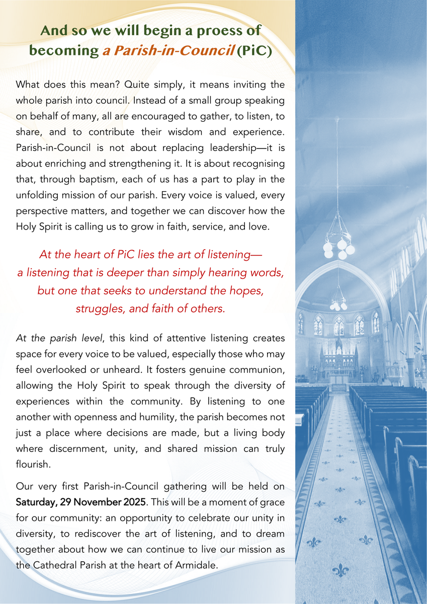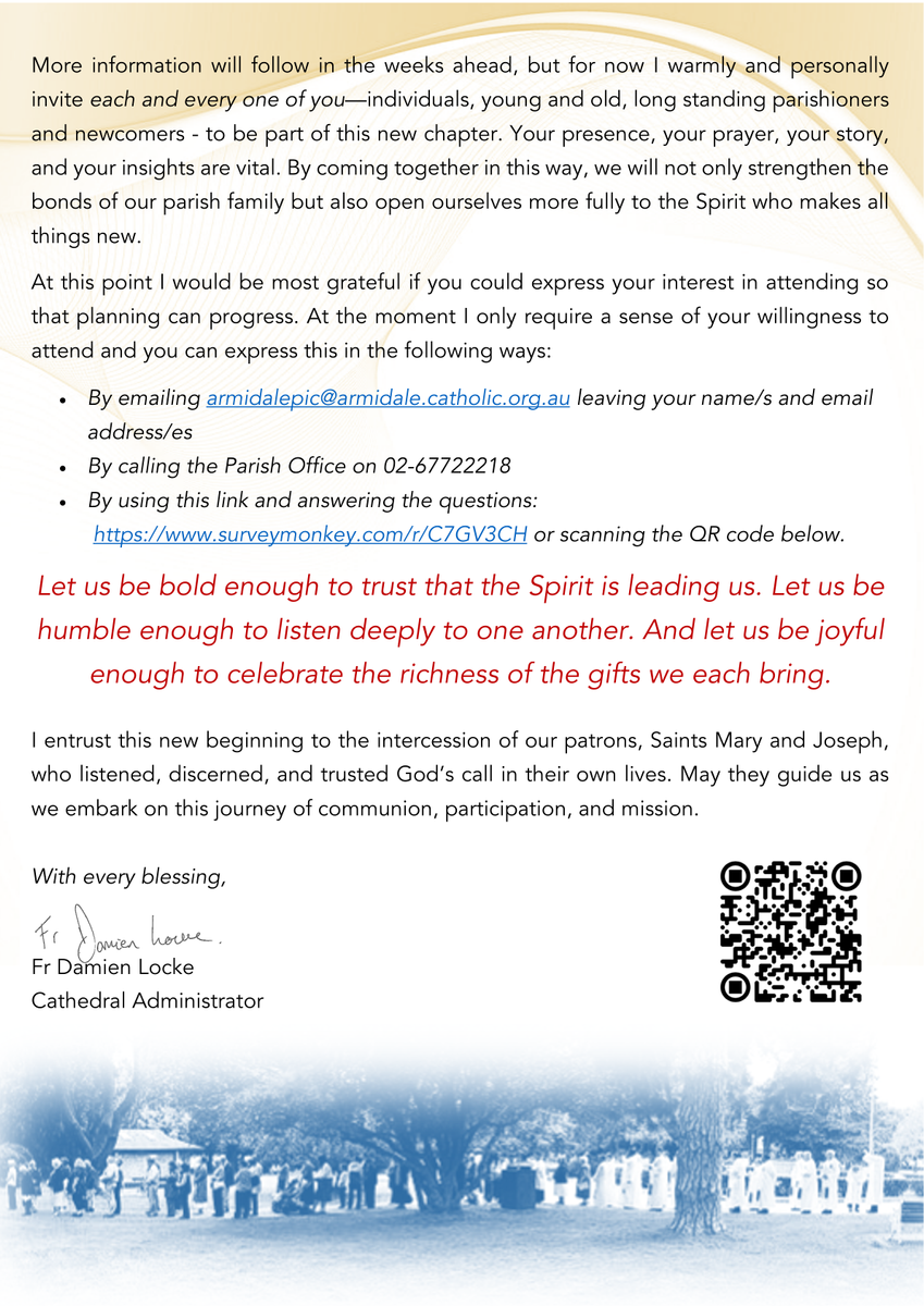 Exciting things are happening in our parish! Please take a moment to read the letter from Fr Damien for more details. We look forward to seeing many of our families join us on Saturday, 29th November for this special occasion.