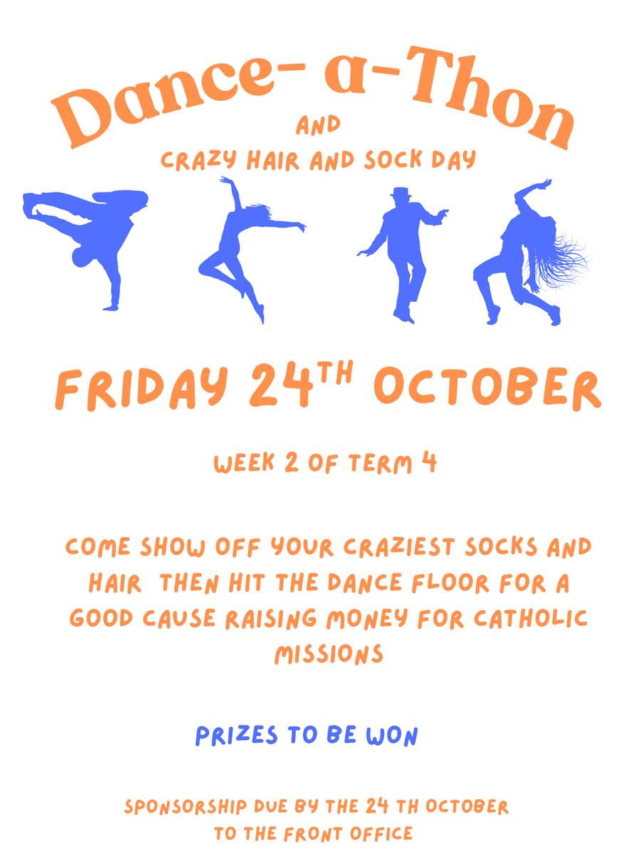 🎶 Dance-a-thon & Crazy Hair/Sock Day – Supporting Catholic Missions 🎶