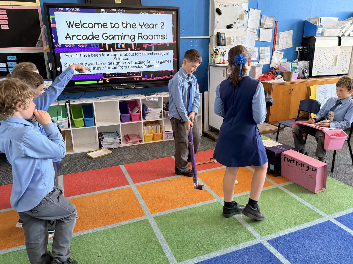 In Science, we concluded our unit on Forces (pushes and pulls) and Energy by creating arcade games. Year 2 is grateful to the Year 1 students and their teachers, as well as our Parents who tested and gave feedback about our arcade games.