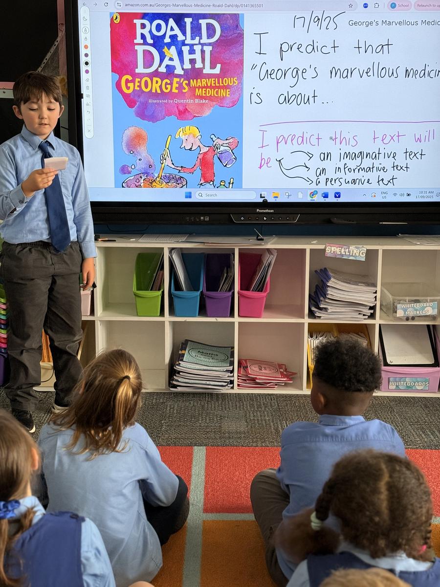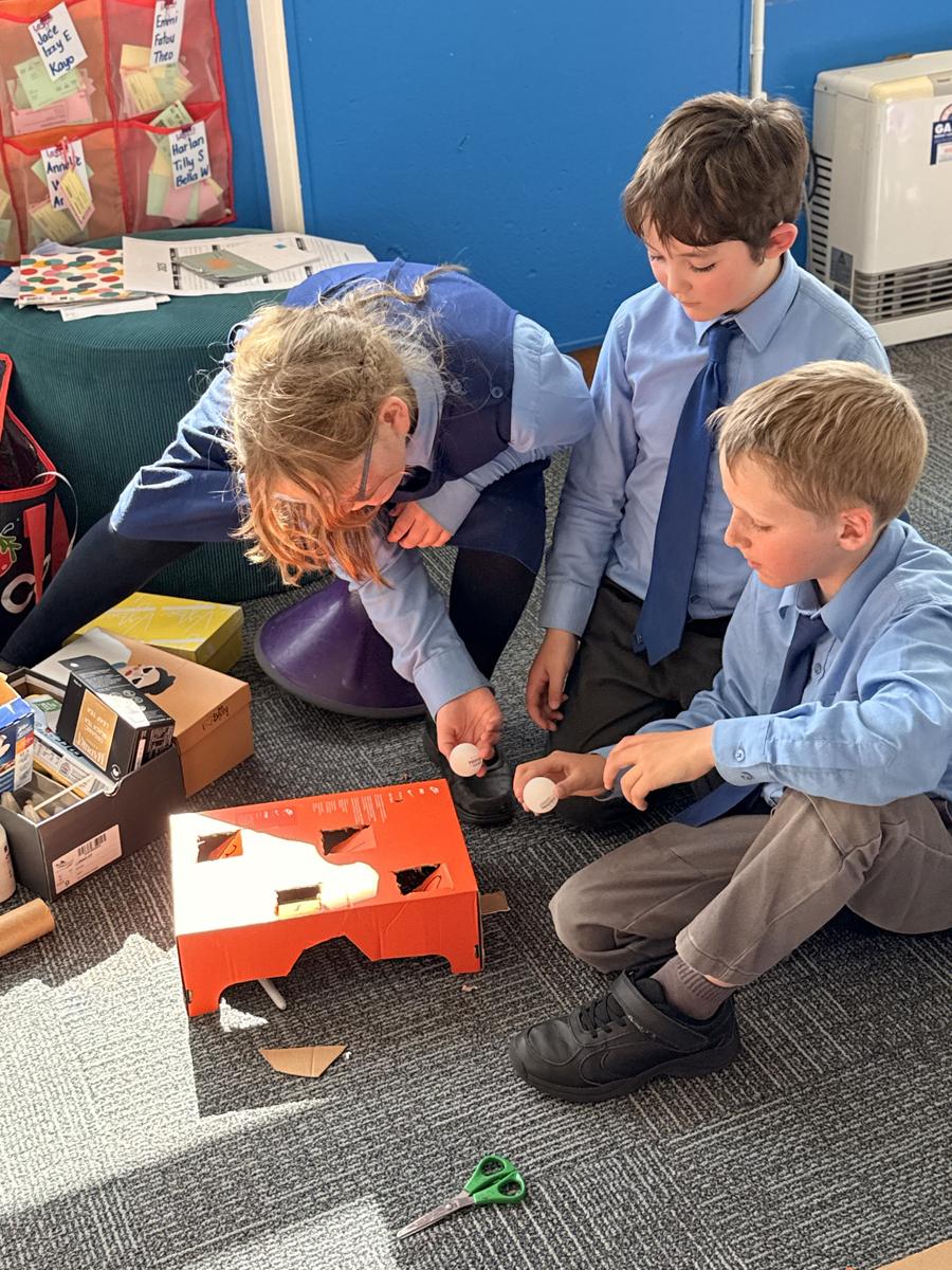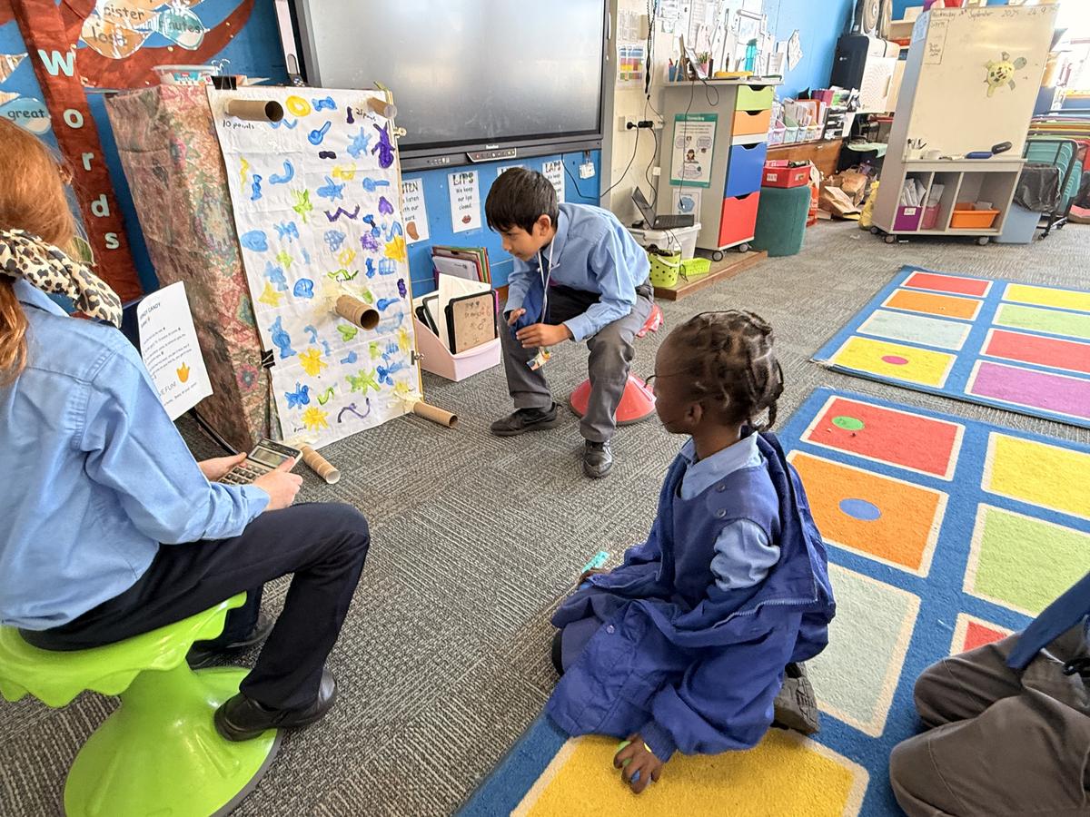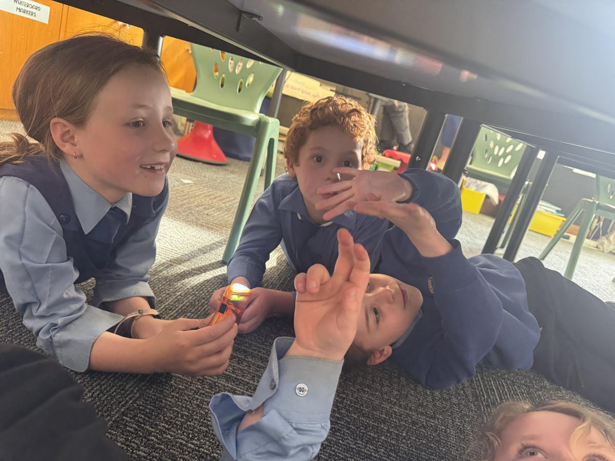 In Science, Year 1 students explored the energy of light by using torches to experiment with shadow puppets. The children discovered how light travels in a straight line and how objects block light to form shadows. They had lots of fun creating different shapes and characters, noticing how moving the torch closer or further away changed the size of the shadow.