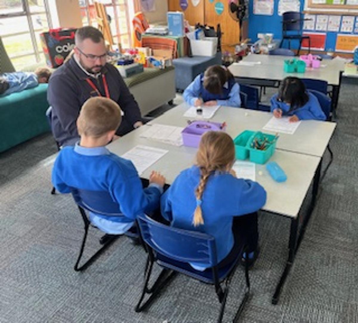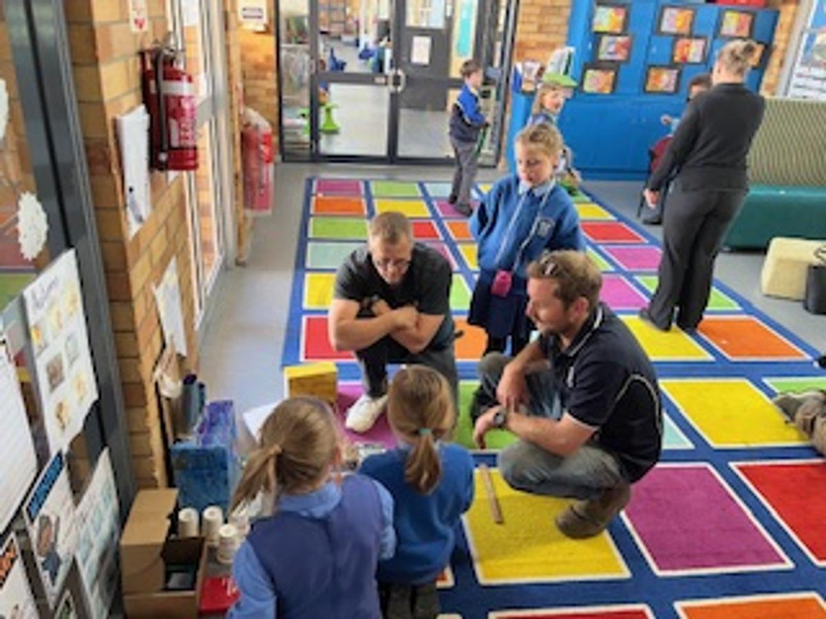 Prayer leaders leading prayer. We were blessed to have Year 1 prayer leaders join us after their Arcade Games experience.