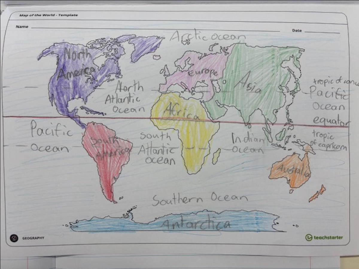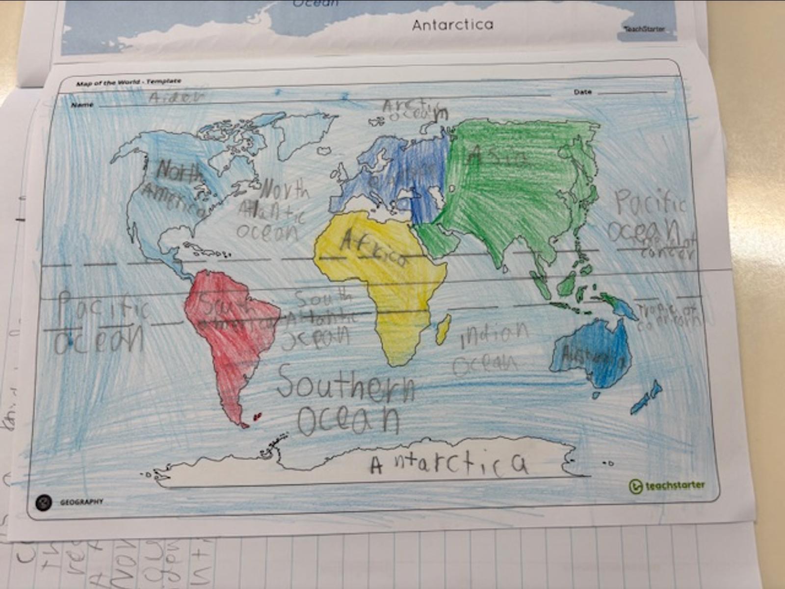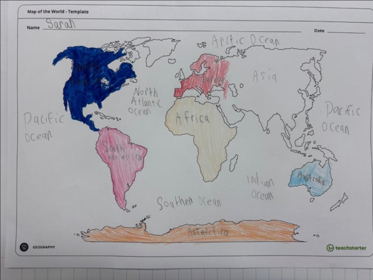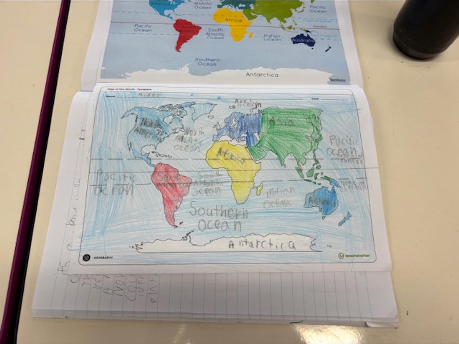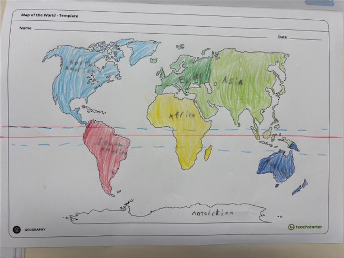 This week, we explored the seven continents of the world. Students identified and located each continent on a large world map, developing their geographical knowledge and spatial awareness. To make remembering the continents easier, Henry, a Year 6 student, created a fun and memorable acronym: AAAAENS — Amazing Ant Alfred Anna Eats Noodle Soup. This clever saying helped everyone recall the continents: Asia, Africa, Antarctica, Australia, Europe, North America, and South America.