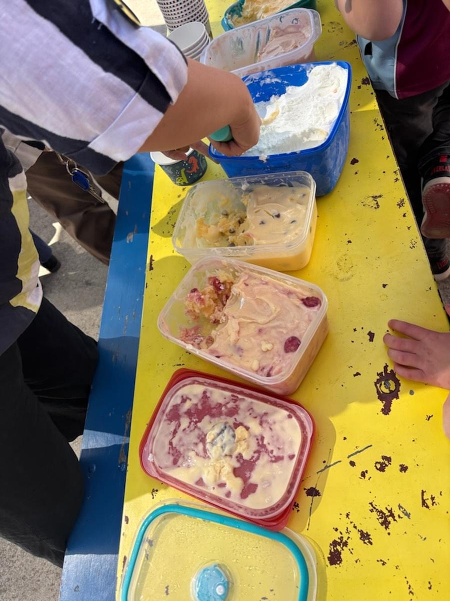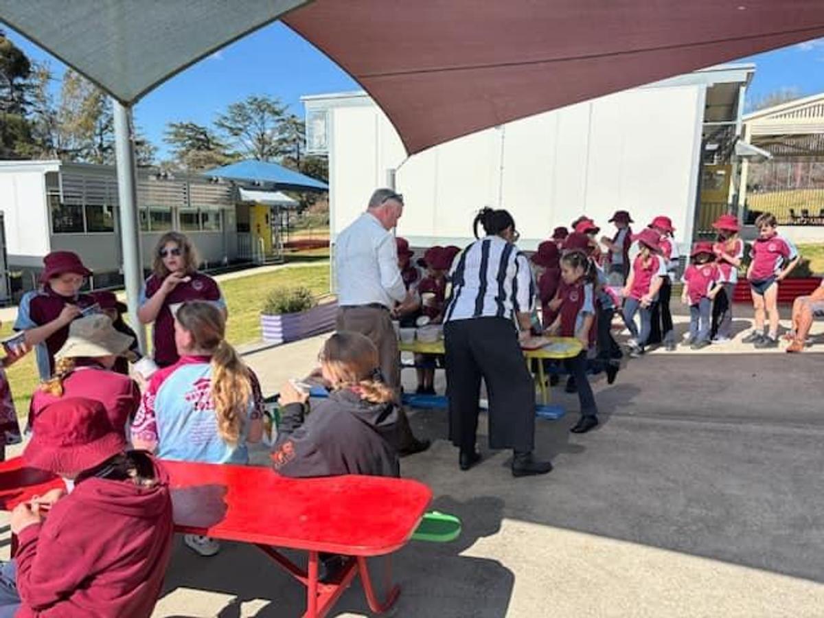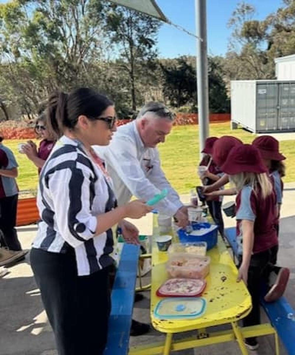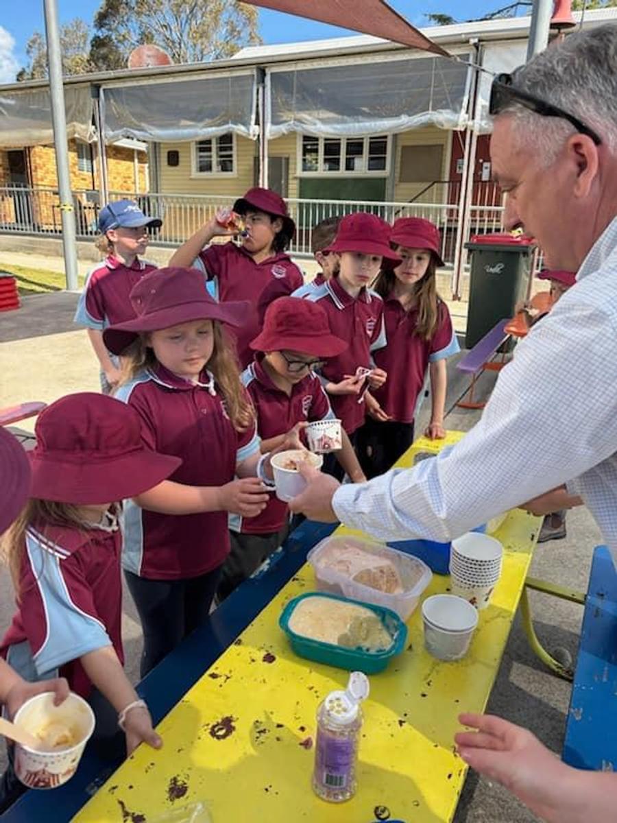 Mr Ridley's Ice Creamery was in full swing last Friday! With our lovely chooks producing more and more eggs in the warmer weather, we are exploring opportunities for the students to use them in creative ways. Mr Ridley led a small group through the process of making vanilla egg custard, which was used as a base for the vanilla ice cream. As a special treat this afternoon, Mr Ridley served up vanilla, strawberry and choc chip scoops, all made from the Rocky River egg base. The ice-cream cups and wooden spoons added to the excitement to this lovely Friday afternoon. Thank you Mr Ridley for creating a special way for students to connect and reset before heading into the weekend
