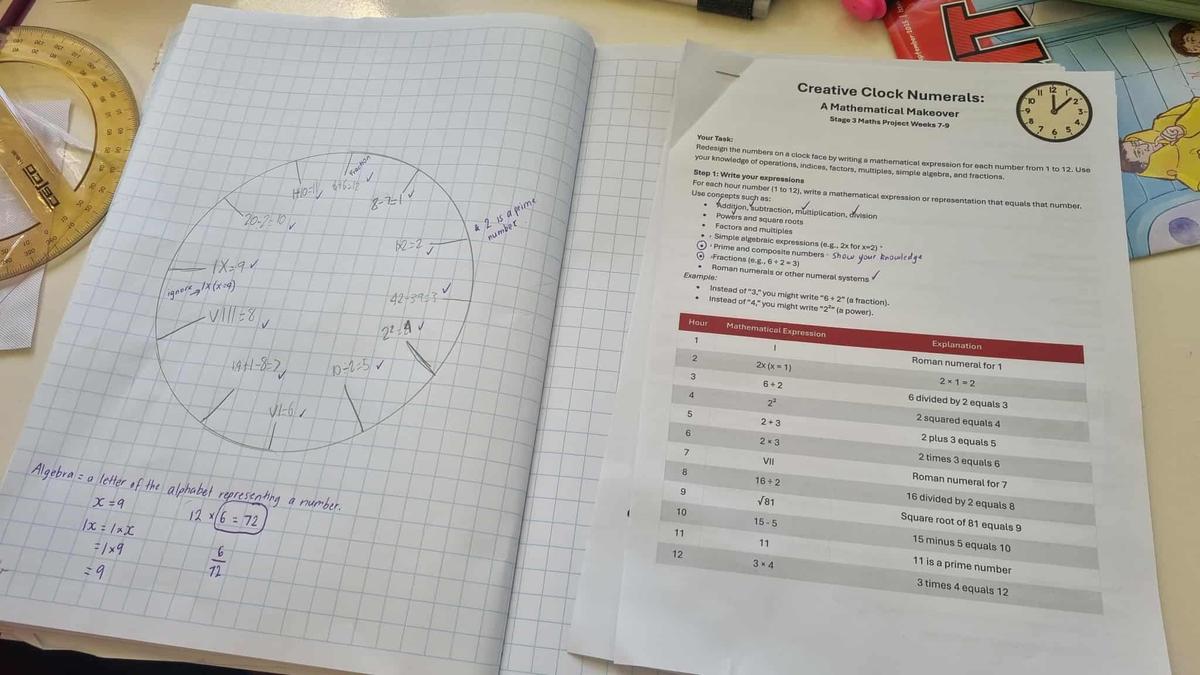 Students in Stage 3 have kicked off an exciting mathematics project, “Creative Clock Numerals: A Mathematical Makeover”! Over several weeks, students will use their knowledge of addition, subtraction, multiplication, division, powers, square roots, factors, multiples, simple algebra, fractions, and numeral systems to redesign a clock face. Each hour mark will be represented by a unique mathematical expression, encouraging creativity and deeper understanding of mathematical concepts. The project also includes opportunities for extension activities and reflection, making Maths learning hands-on and engaging for all. We look forward to seeing their imaginative designs come to life!
