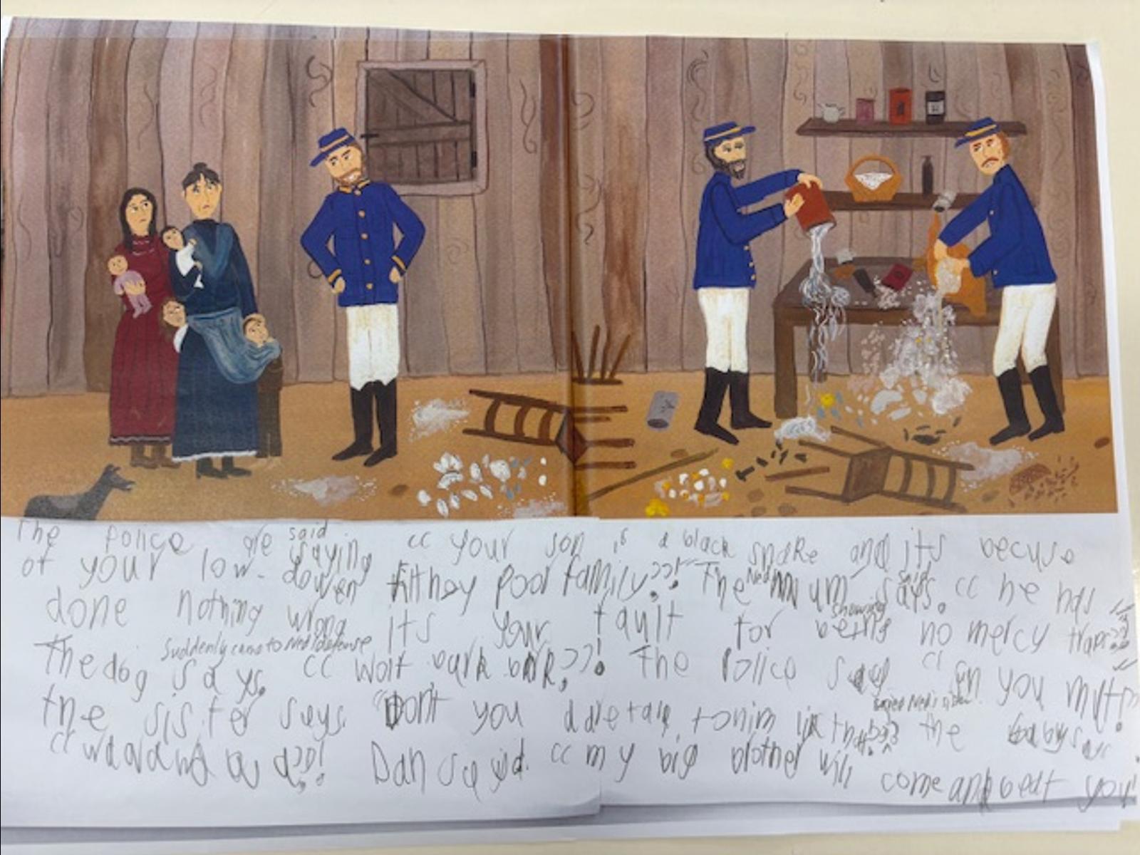 To deepen their understanding, students were given illustrations taken directly from the mentor text. They carefully studied these images and then wrote their own words to accompany them, blending creativity with analytical skills. This exercise helped students appreciate how text and visuals work together to tell a compelling story.