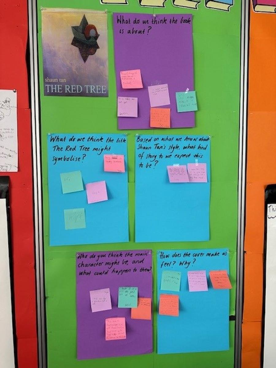 At the start of the term, we were introduced to a picture book - The Red Tree by Shaun Tan. We explored the question “What is a picture book and what makes a picture book good?” Looking at just the front and back cover, we made predictions, discussing: