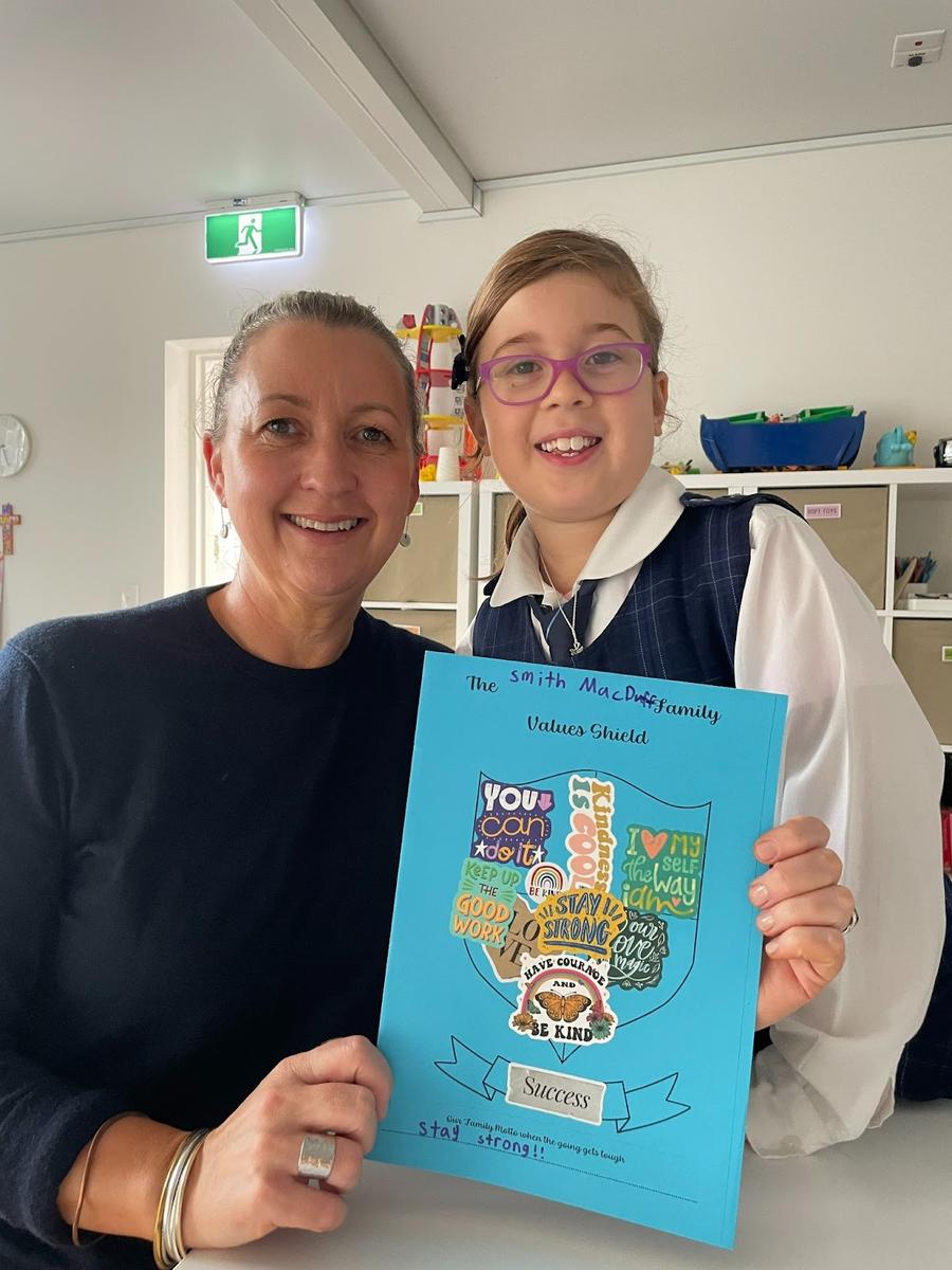 How good it was to see so many families in the Parish Centre last Monday, Tuesday and Wednesday morning to create a Family Shield for National Families Week. We even had some Dad's participate which was wonderful. The challenge was to select 10 words that resonate with your family or 10 things that your family values. Challenging for all family members to agree on, but a great way to set the expectations for home and life.