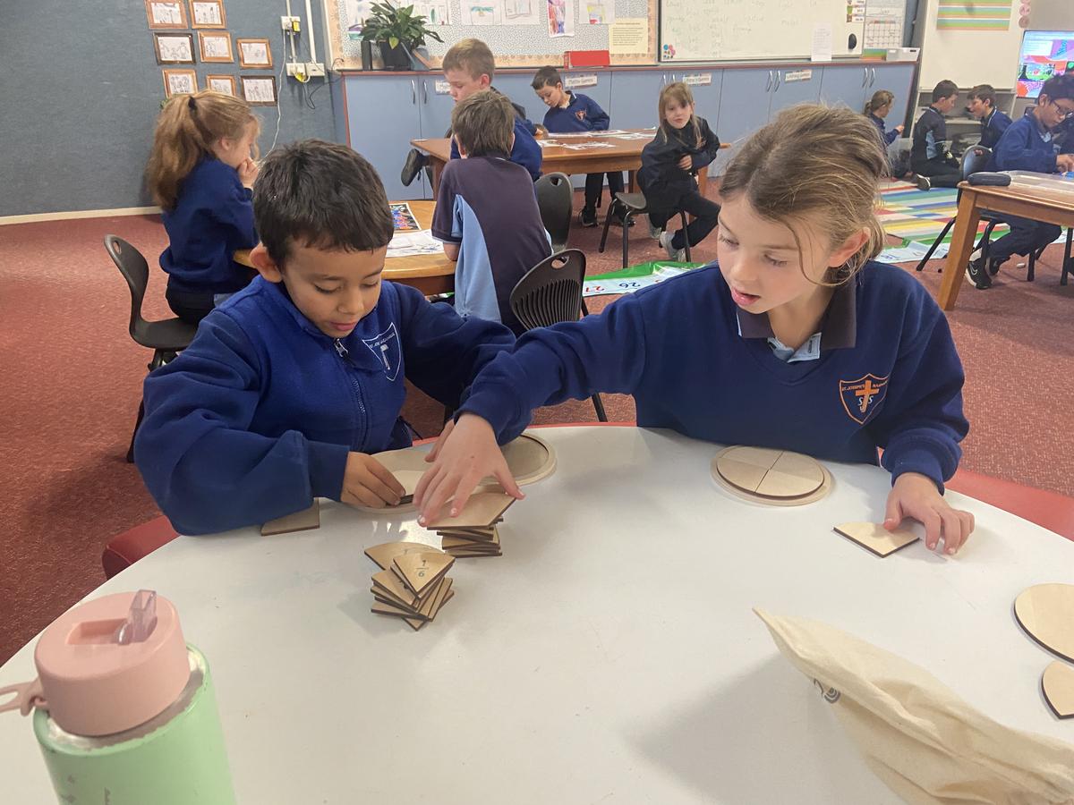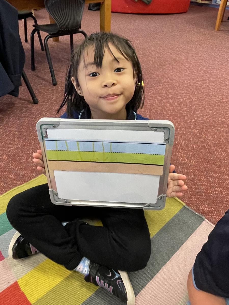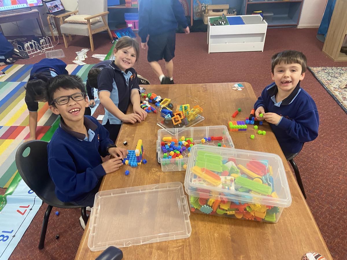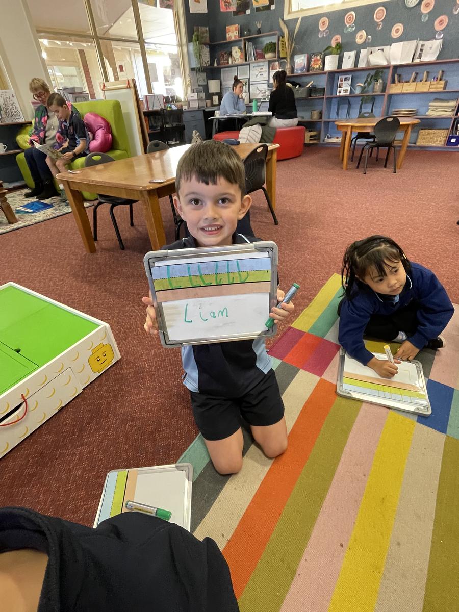 We have continued to revise our counting, making small collections, and matching numerals to amounts. We had a huge session of rotational activities when the 2/3 joined us on Thursday which included using a number line to help us solve equations, building with magnetic blocks, fraction puzzles, board games as well as number games on the iPads.