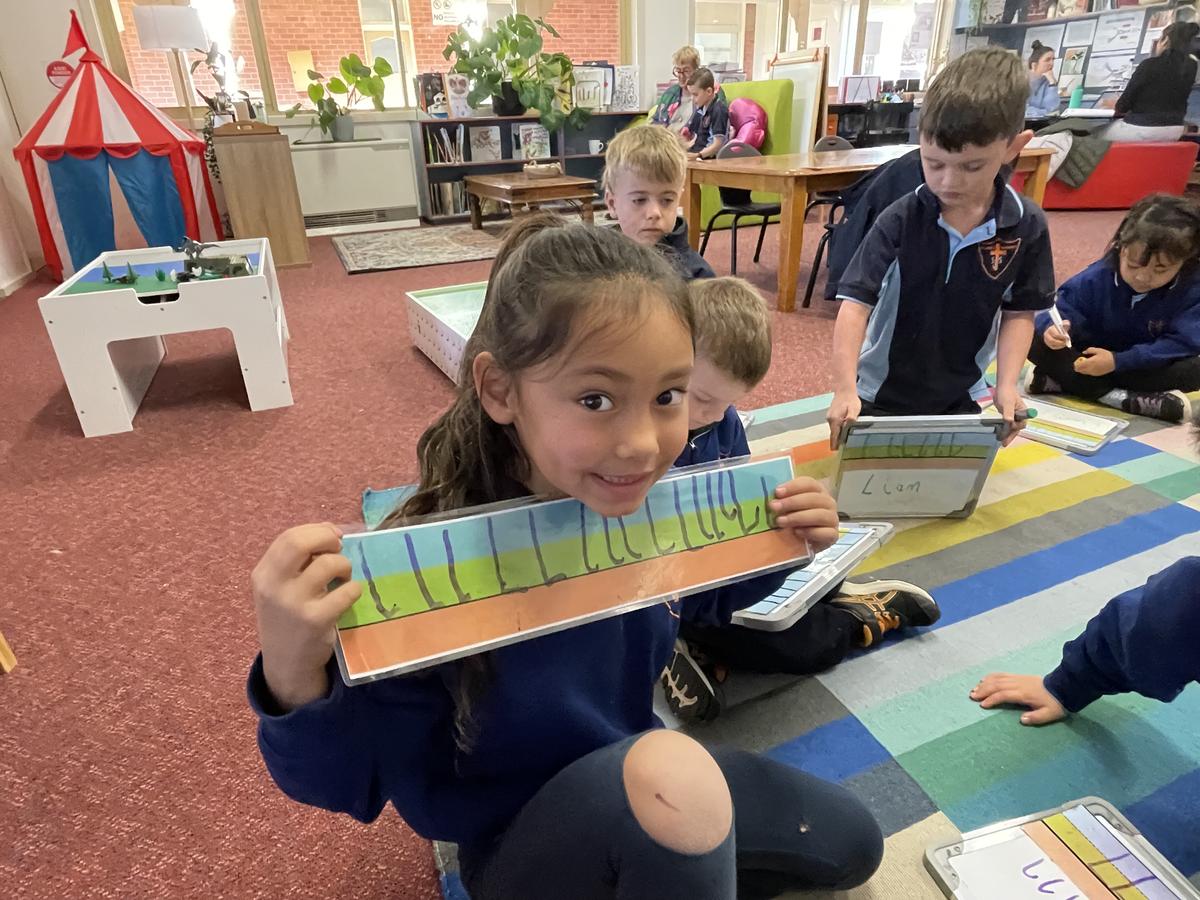 On Wednesday when we ‘ruled the school’ due to the 2-6’s being in Melbourne on an excursion, we took the opportunity to use our measurement skills, throwing our self designed and made aeroplanes on the courts and using a metre wheel we measured how far each plane went.