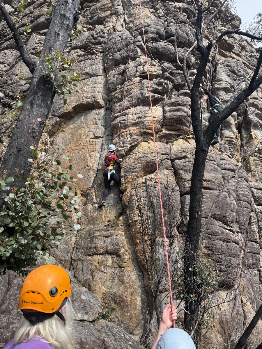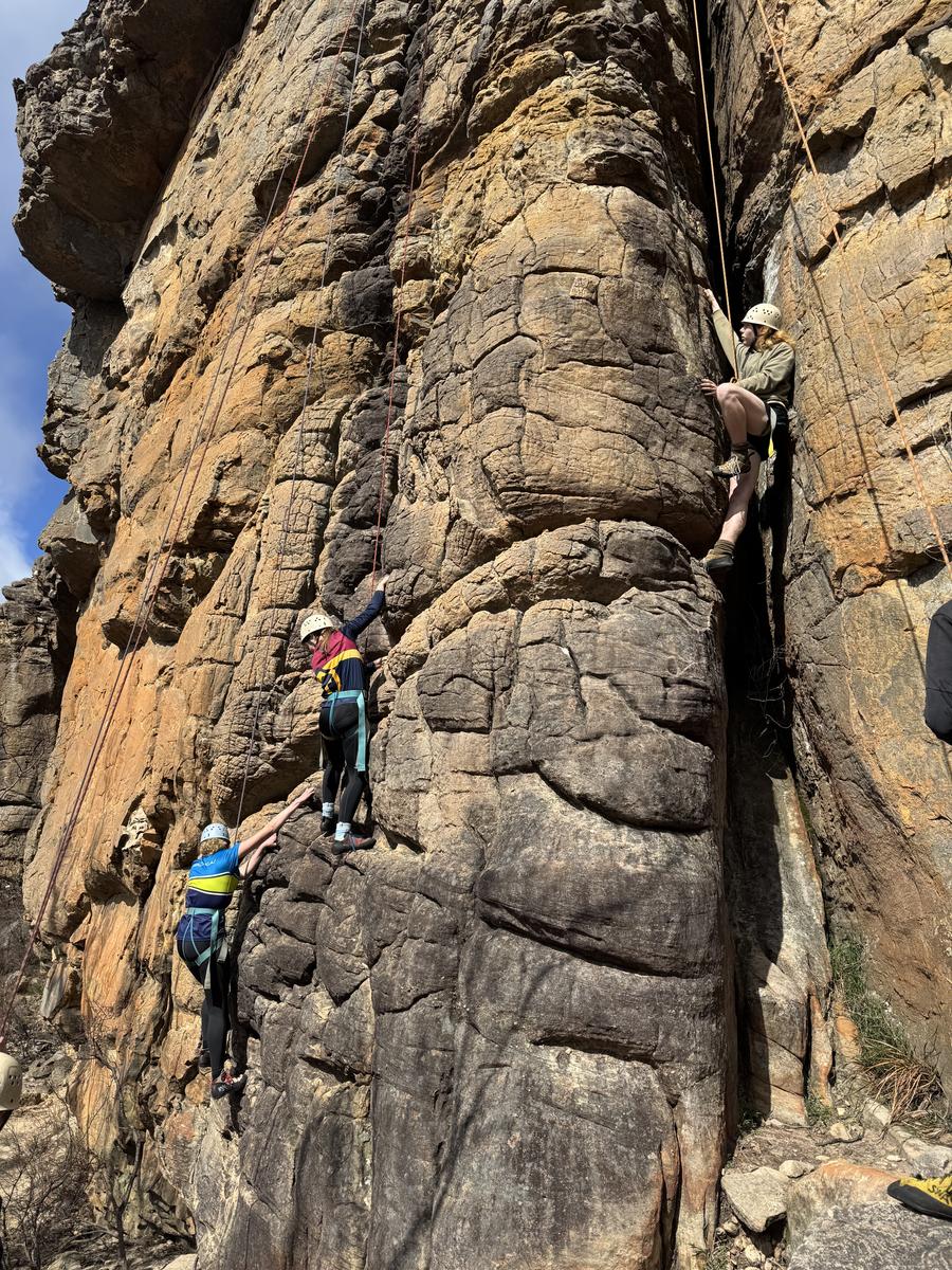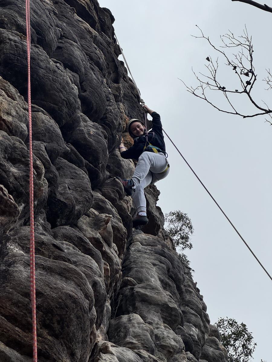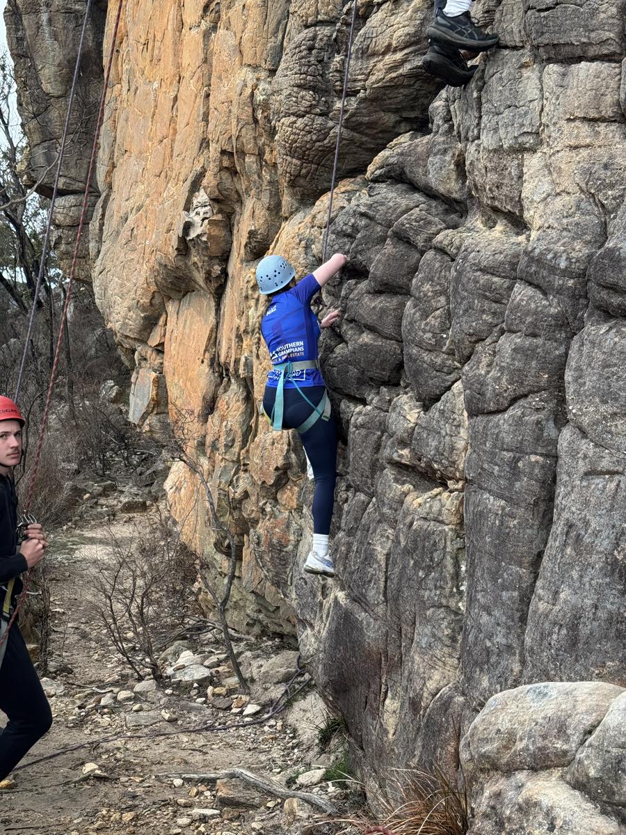 On Thursday the 11th of September the year 10 advanced outdoor ed class headed off on an amazing adventure to Halls Gap. First up we went on a short walk before heading to a caravan park to get our bikes for a treacherous three hour of bike ride where someone had a disastrous fall (Seth) and ripped his coat. After the bike ride we headed to Mackenzie falls where unfortunately we did not see Mackenzie fall. Once we got to the campsite we set up and cooked dinner but, a couple students, (Jessy and Sam) went for a walk and left their tent open and unattended, giving a kangaroo the opportunity to go inside their tent and eat two of their rolls!!! It would’ve been more, but luckily Sophie came to the rescue and scared it off. After dinner it got heated playing card games and there were multiple cashouts, one of them being from woody who thought he could win his first time playing spoons. He did not. On Friday we all packed up and headed to rock climbing where we witnessed history being made when Ruby beat Isaac by climbing higher than him. The best belayers as voted by Woody were Isabelle and Mackenzie who helped him get to the top! After rock climbing we stopped at Lake Bellfield for a quick lunch before returning home. Overall the camp was heaps of fun and memories were made!