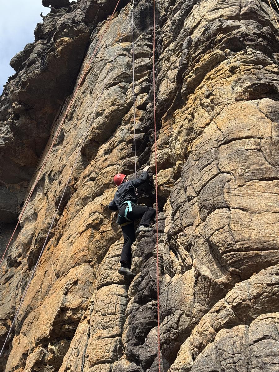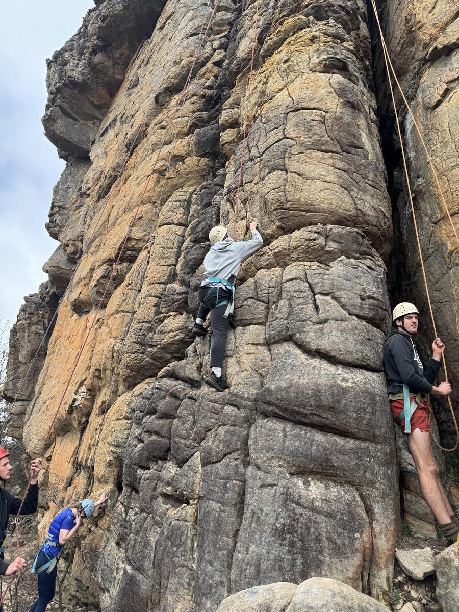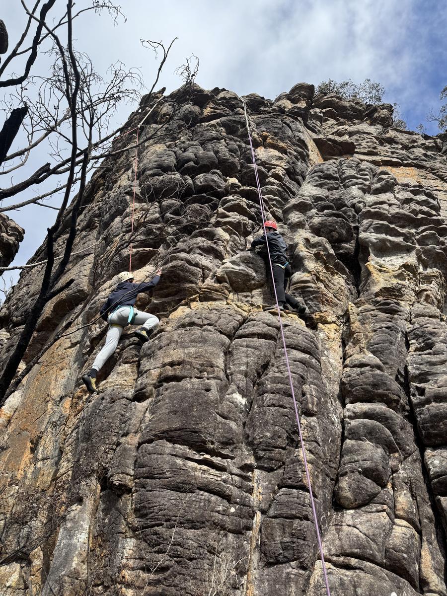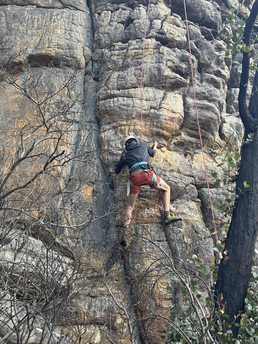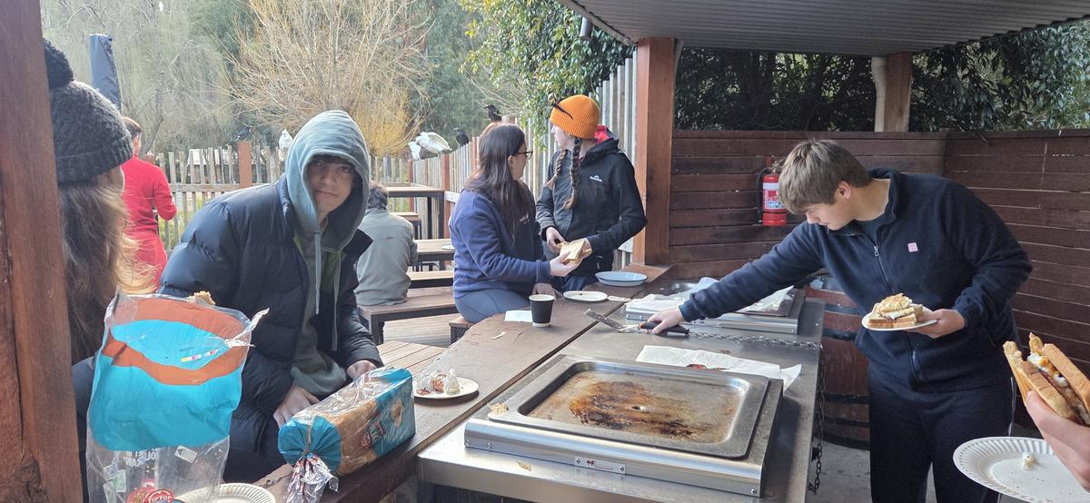 On Thursday the 11th of September the year 10 advanced outdoor ed class headed off on an amazing adventure to Halls Gap. First up we went on a short walk before heading to a caravan park to get our bikes for a treacherous three hour of bike ride where someone had a disastrous fall (Seth) and ripped his coat. After the bike ride we headed to Mackenzie falls where unfortunately we did not see Mackenzie fall. Once we got to the campsite we set up and cooked dinner but, a couple students, (Jessy and Sam) went for a walk and left their tent open and unattended, giving a kangaroo the opportunity to go inside their tent and eat two of their rolls!!! It would’ve been more, but luckily Sophie came to the rescue and scared it off. After dinner it got heated playing card games and there were multiple cashouts, one of them being from woody who thought he could win his first time playing spoons. He did not. On Friday we all packed up and headed to rock climbing where we witnessed history being made when Ruby beat Isaac by climbing higher than him. The best belayers as voted by Woody were Isabelle and Mackenzie who helped him get to the top! After rock climbing we stopped at Lake Bellfield for a quick lunch before returning home. Overall the camp was heaps of fun and memories were made!