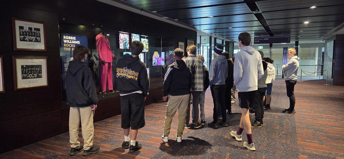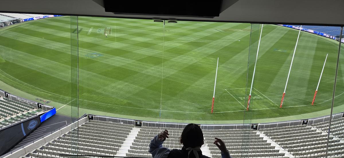 On Wednesday after we had breakfast and waited for Harvey to get ready, we headed straight towards the MCG where we had the opportunity to experience a tour, see the underground facilities and the players change room, and immerse ourselves in the history and gain insights in Melbourne’s Sporting history. We walked along the boundary line of the arena, got to touch the hallowed turf, and saw great views of the MCG from multiple perspectives.
