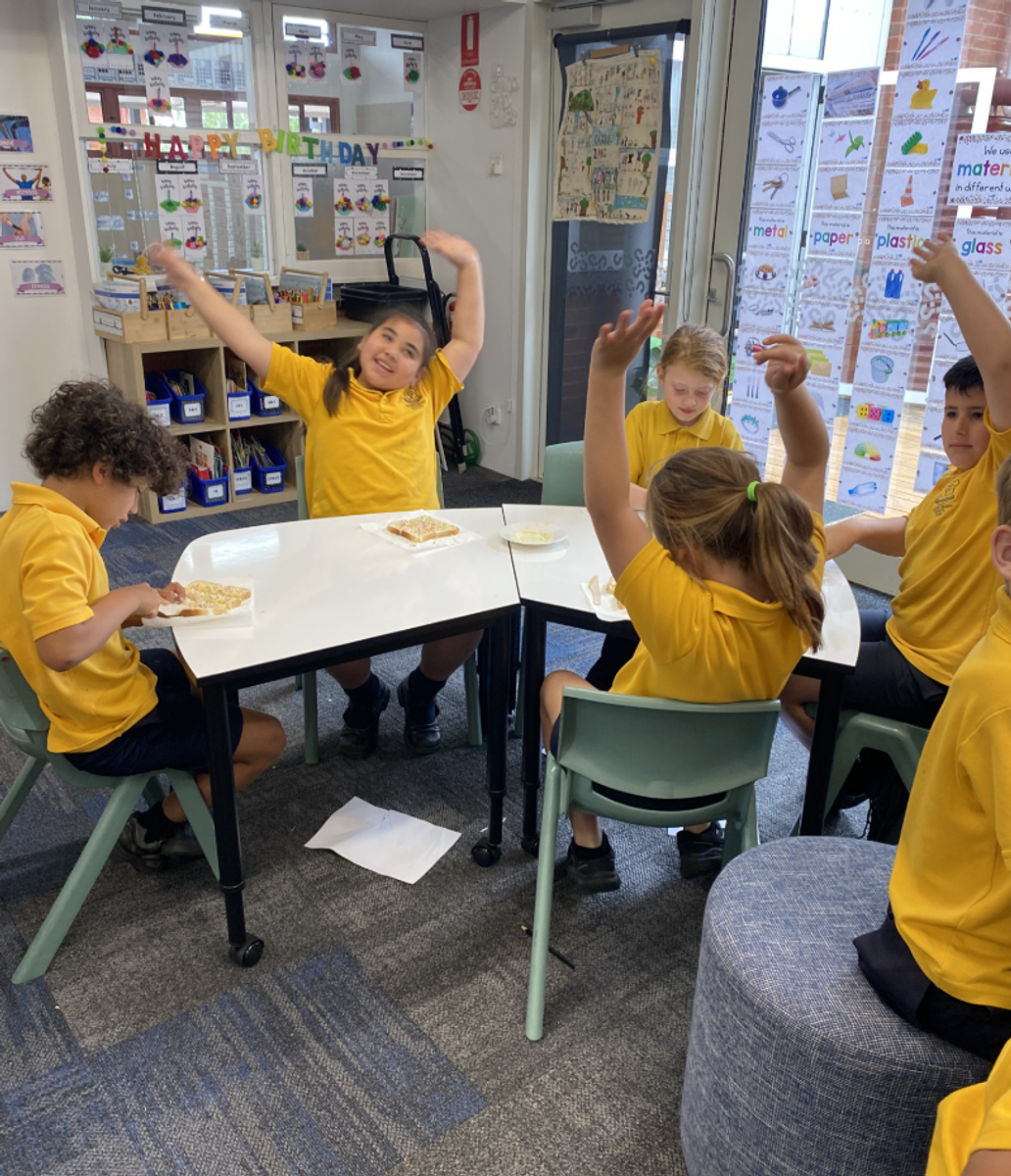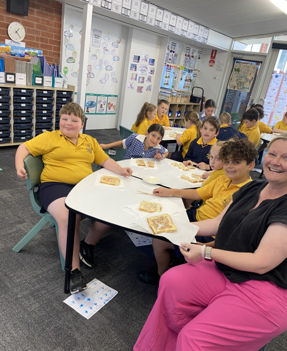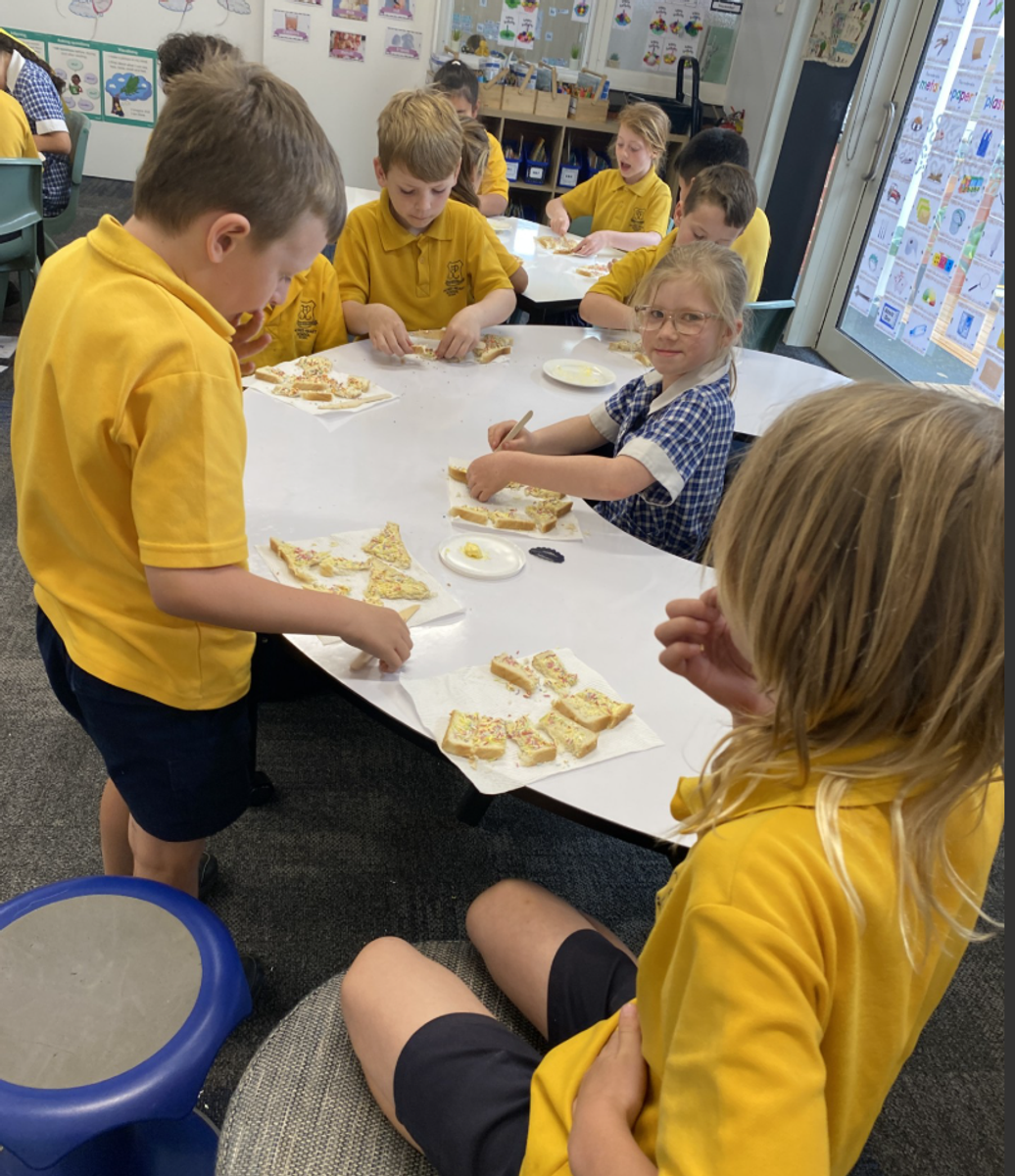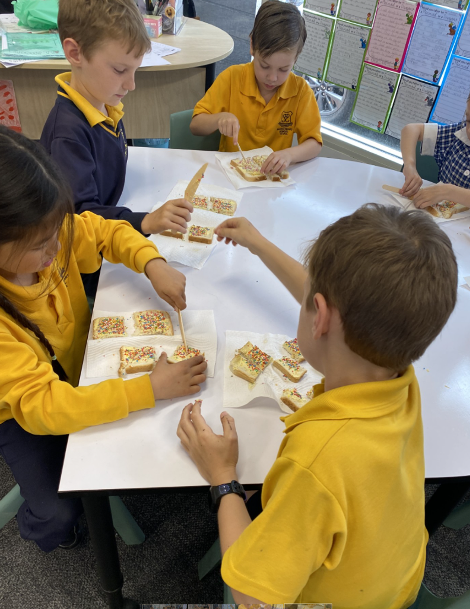 On Monday the Year 2 students engaged in an activity based on fractions. They made fairy bread cutting it initially in half, then quarters and then eighths.