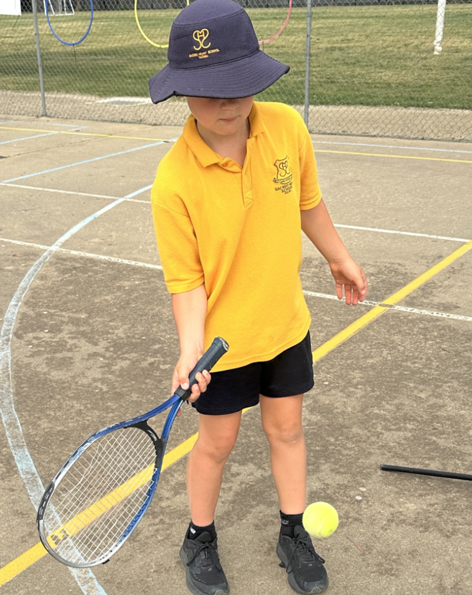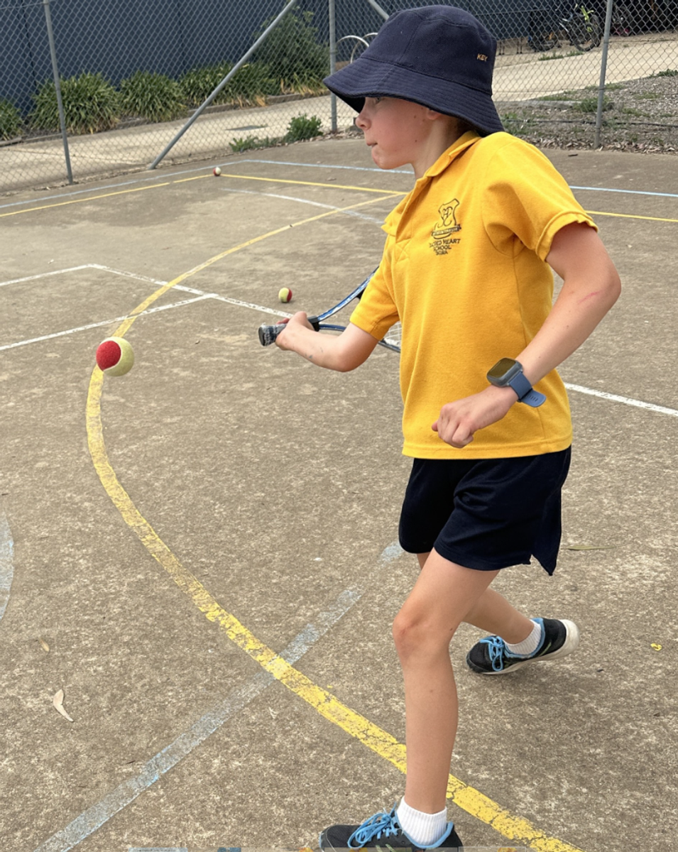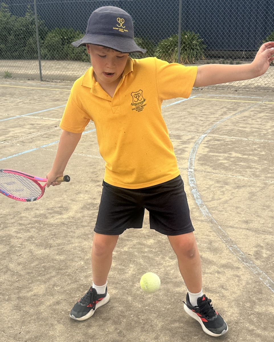 As part of a successful Sporting Schools grant, Sacred Heart students have had tennis coach David Starling here running some coaching and skills with all students this week.