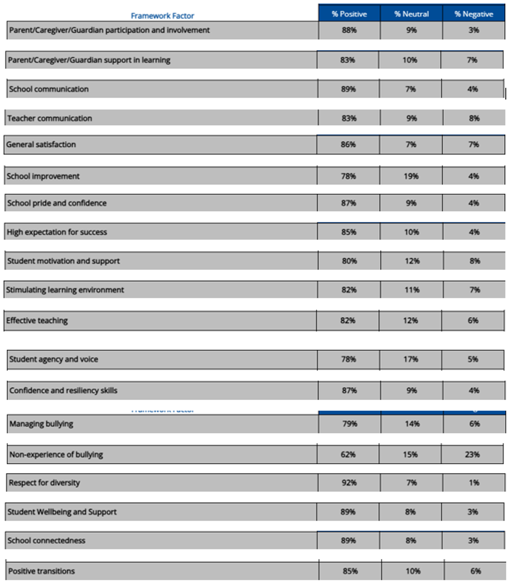 The results are affirming, and while we are pleased with the feedback. We are always looking for opportunities to improve. The preliminary data has been released, and there is much to celebrate as a school community.