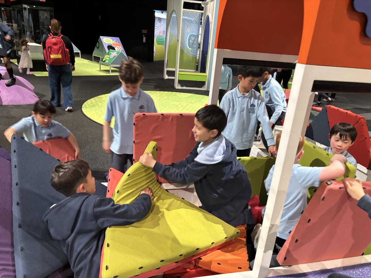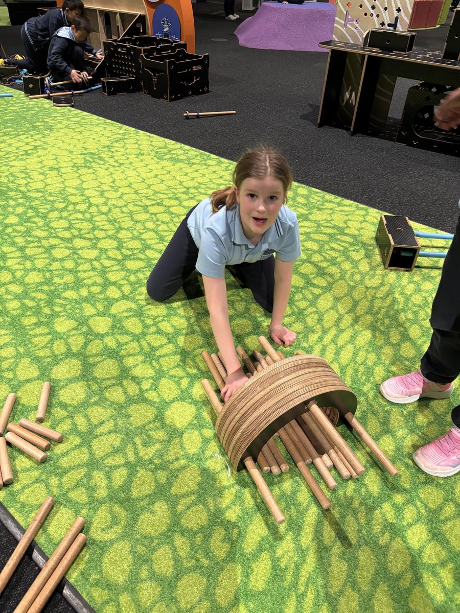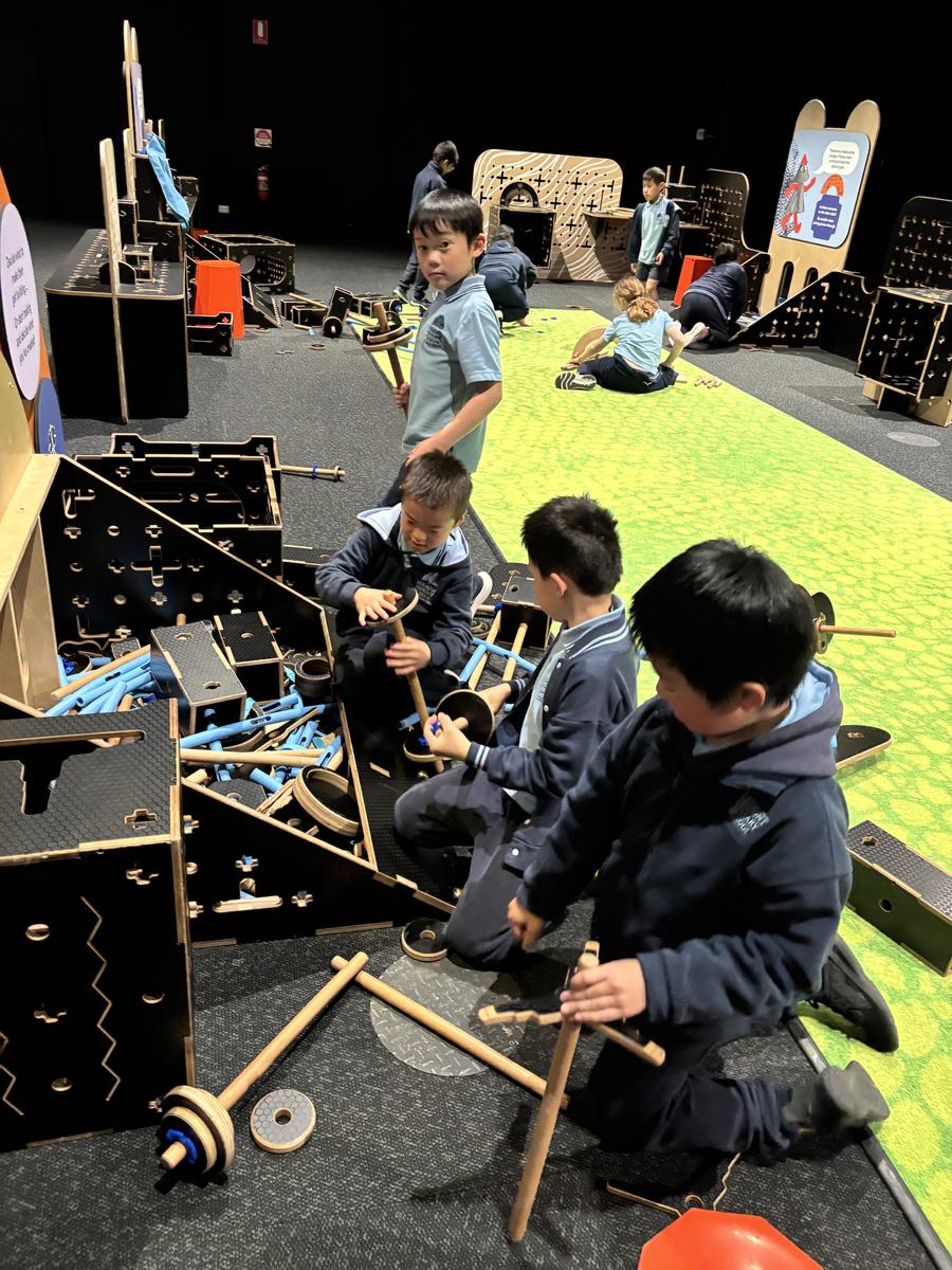 On Monday all of the Year 2's took a long bus ride through a tunnel and over the West Gate Bridge to Scienceworks. All the students, teachers and parent helpers had so much fun exploring Tinkertown, the Muesum and the Energy lab. They were busy using their imagination to build cubbies out of magnetic cushions and cafes from various equipment engaging in authentic real-world challenges. The students made connections to our Inquiry topic of Forces, Push and Pull in the Energy lab. The highlight was watching Ms Lumley get a red cup pushed off her head using the force of air.