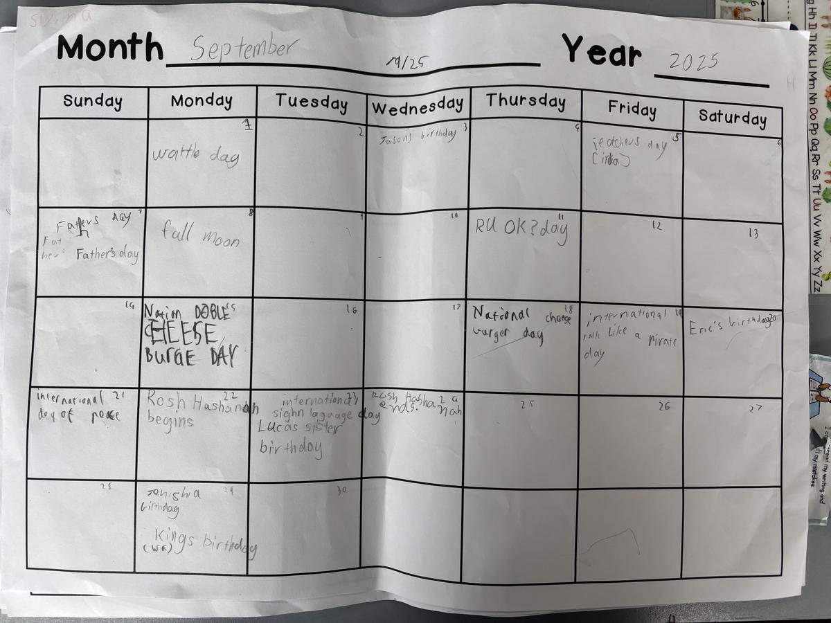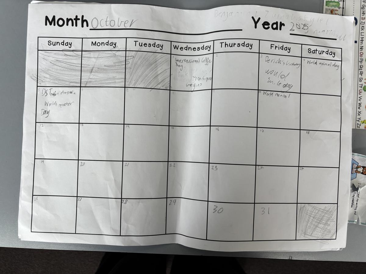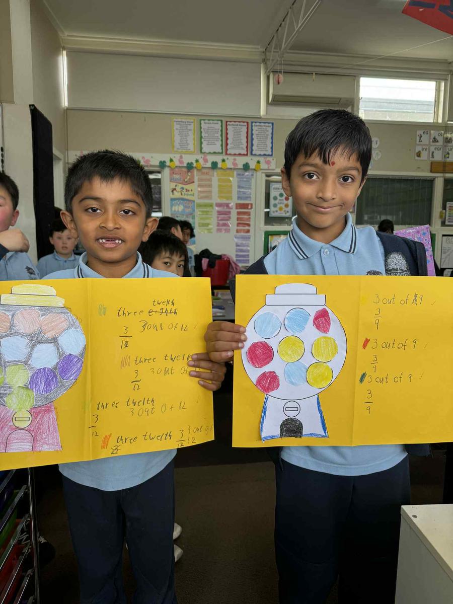 In Maths the students have been learning more about Fractions. They have created Gumball Machines with different fractions for their gumballs. In Calendars, they have researched special days for September, October, November and December. One of the most interesting was National Deep Fried Clam Day!