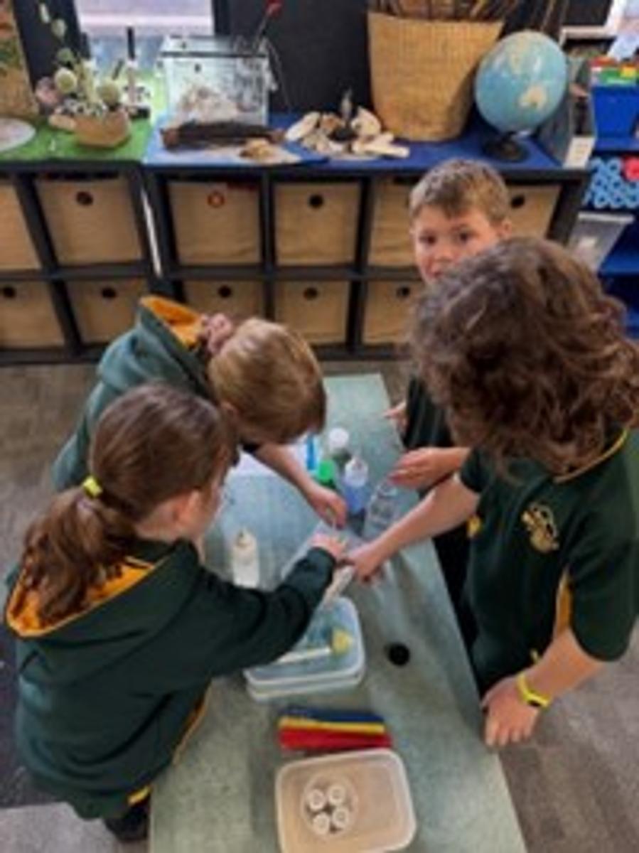 We also experimented with mixing materials to create our own playdough, noticing how the texture and properties changed as we combined the ingredients. A highlight of our unit was the special visit from Professor McKay, who wowed us with spectacular science experiments. She amazed us with bubbling volcanoes, colourful magic milk patterns, and even balloons that inflated by themselves without anyone blowing them up! Through these activities, students have developed their understanding of how mixing and reacting materials can cause exciting and surprising changes. Most importantly, we have discovered that science is not only about learning—it can be lots of fun too!