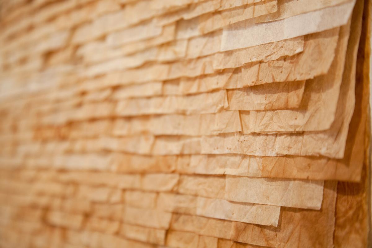 Artist Denise Lamby won the residency prize with her piece Memory of the Land, which turned humble used teabags into a delicate layered piece reminiscent of sandstone beds. Another innovative use of techniques was evident in Valerie Sparks’ The Long View. On first inspection one might assume they are depictions of icebergs so it was fascinating to learn about how garden rocks underwent medical scans which were then digitally coloured and enhanced.