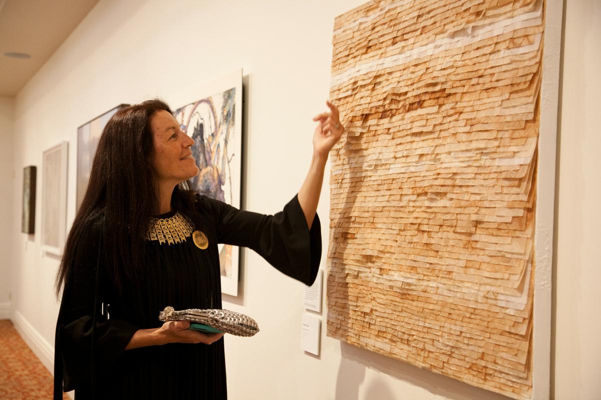 What was most striking was how innovative some of the materials and techniques being used were, such as the winning piece by Sophie Cape Thunder shifts the shivering sands. The artist took her canvas into the environment she was trying to capture and subjected it to natural forces, leaving it to soak in the aftermath of a flood and using the materials immediately at hand such as rust, charcoal, soil, and pigment to build up layers and convey the essence and feeling of the landscape as opposed to a literal translation.