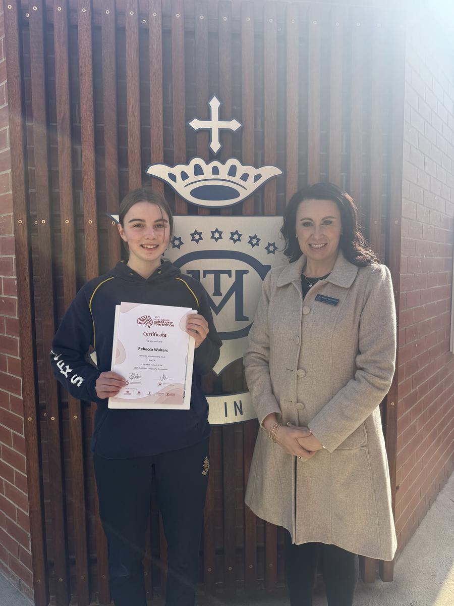 We are delighted to share that Cariad Lewis (Yr 8) and Rebecca Walters (Yr 10) have both achieved first place in Tasmania in the 2025 Australian Geography Competition. This is a remarkable accomplishment, as our school is the only Tasmanian school to have two prize-winners this year.