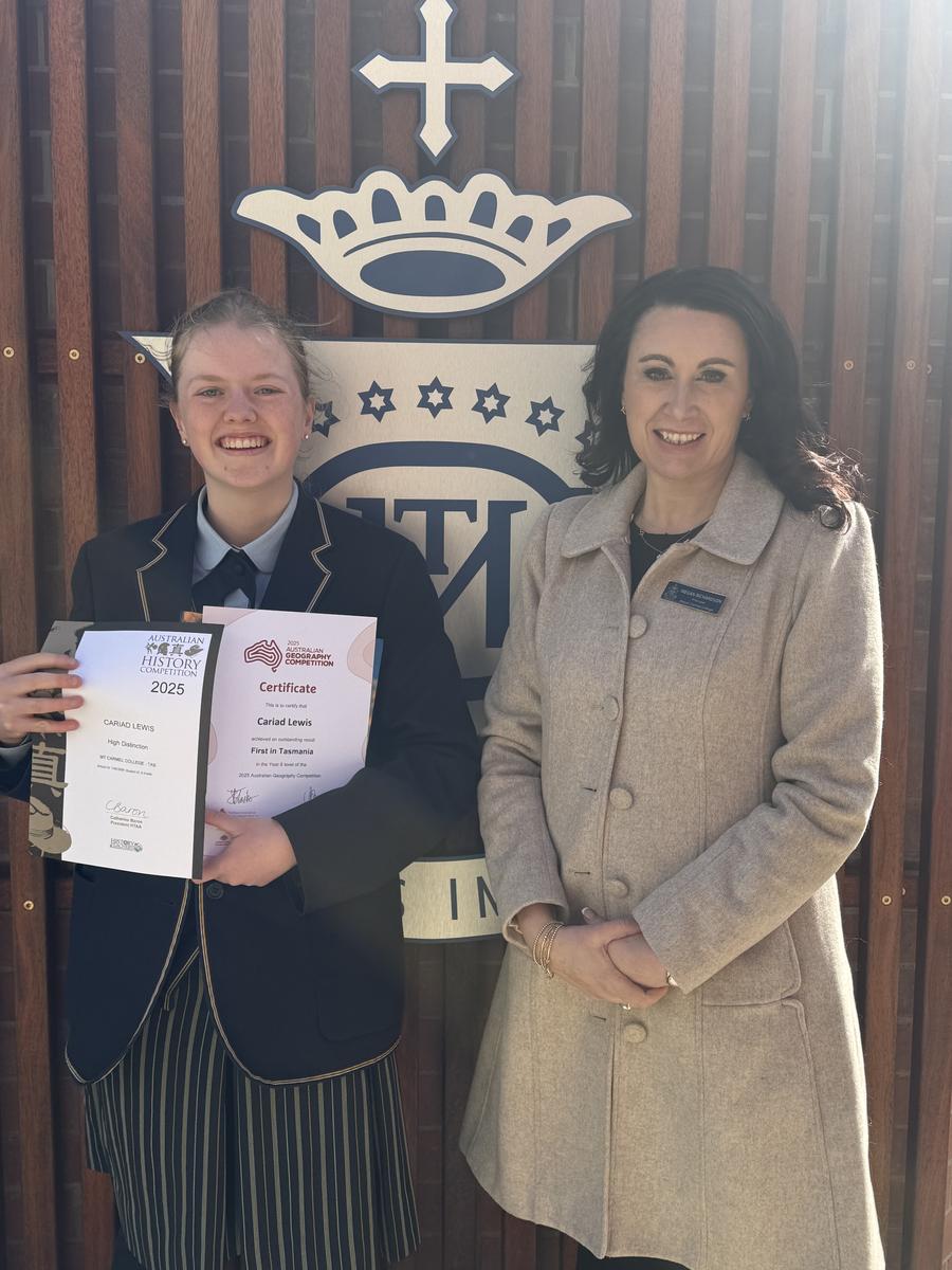 We are also thrilled to announce that Mia Turner (Yr 10) has been awarded Joint State Champion for Tasmania in the 2025 Australian History Competition. This is an outstanding achievement, recognising Mia as one of the very best young historians in the state.