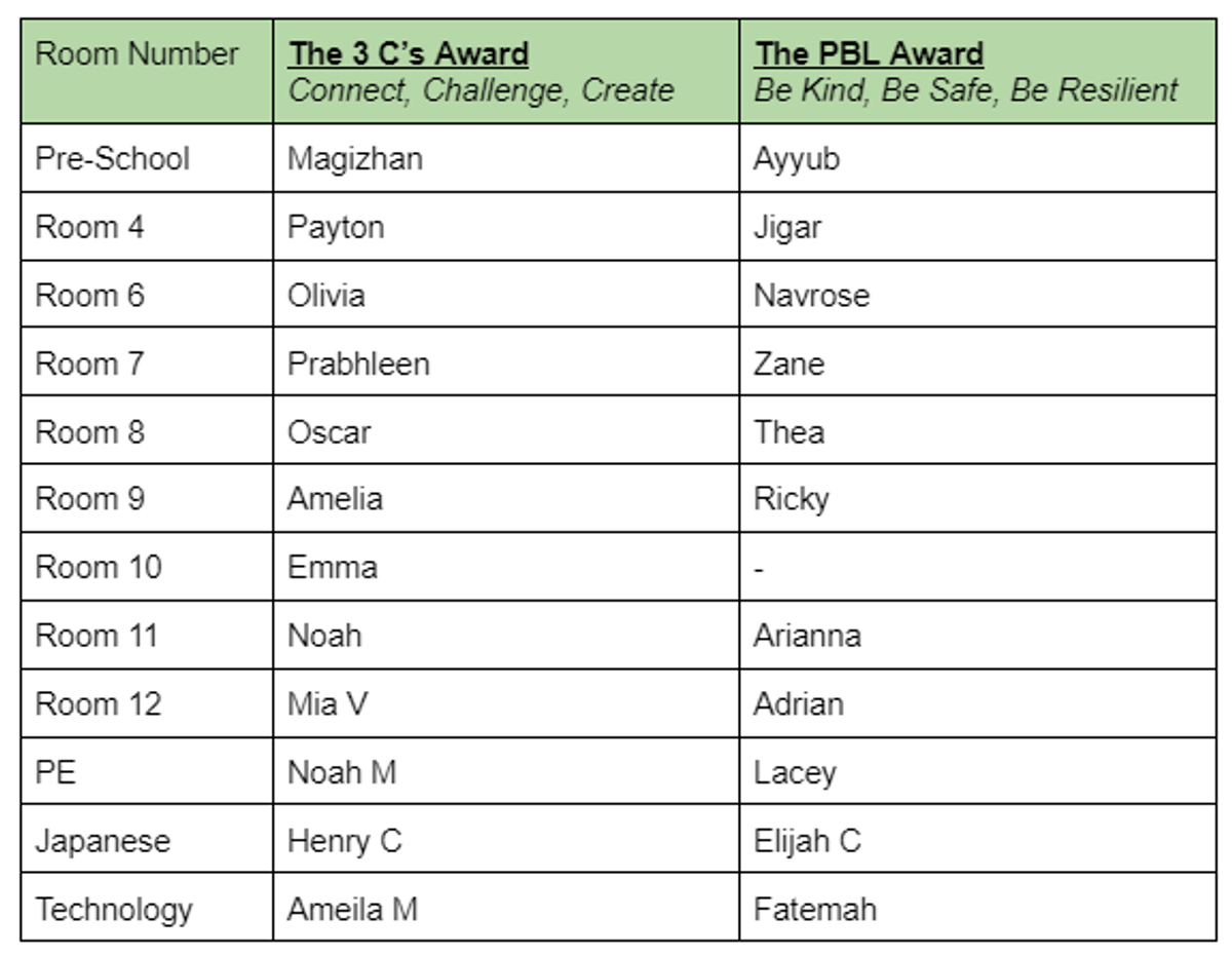 Congratulations to the following students who received an Assembly Award at our recent assemblies. Keep up the great work.