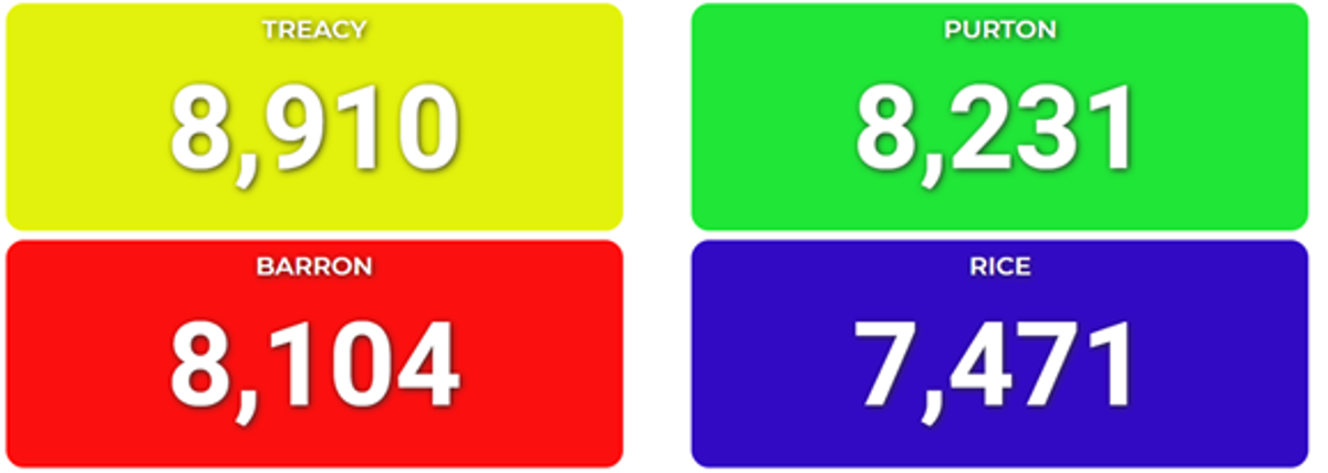 Narrowly in 3rd Place on points ……… 8,104 BARRON