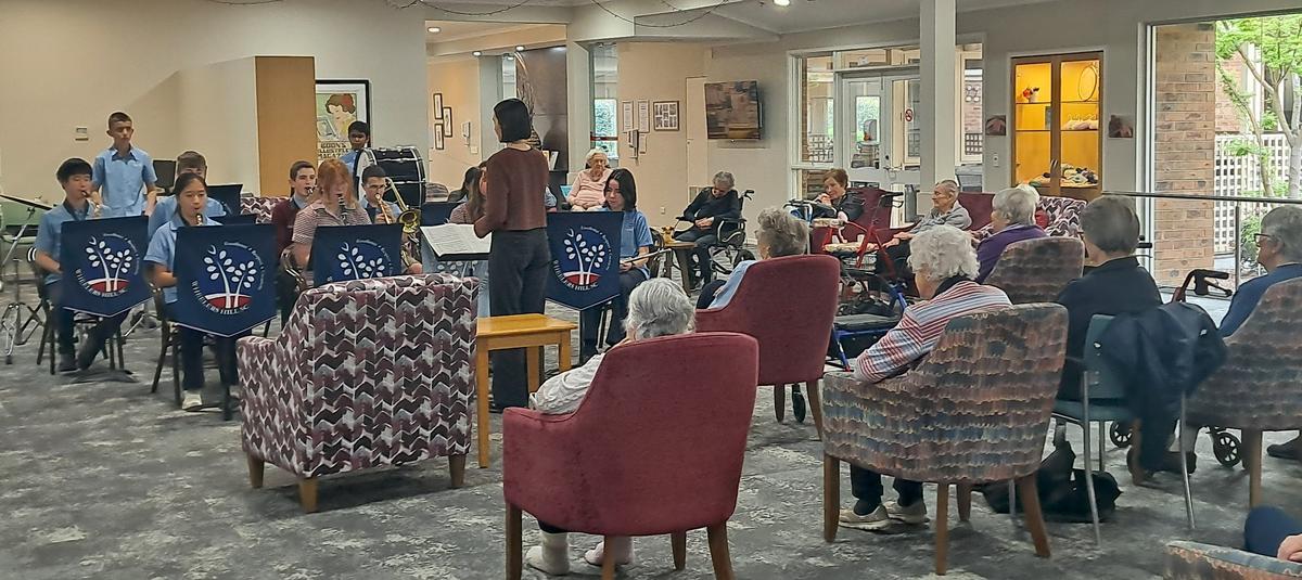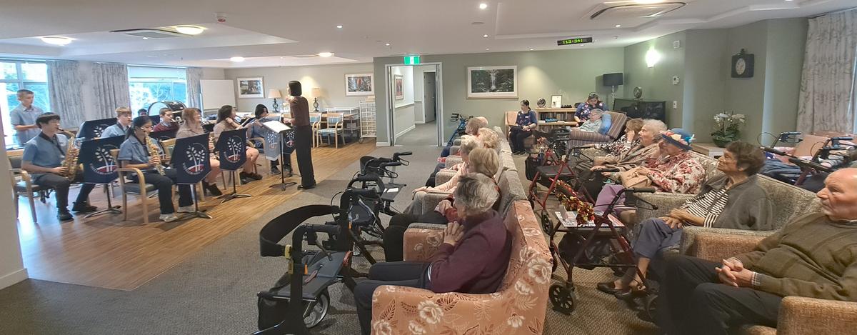 On the 16th of September the Intermediate Concert Band went to some retirement villages to play for the elderly people living there. We first went to Cumberland View Retirement Village by the school bus that was being used for the first time after renovation. When we arrived at the Retirement Village, we set up our instruments and stands and then started to perform. We played “Circle of Life” from The Lion King, “Dark Star”, “Stand By Me” and “Sweet Caroline” as a band for the audience.