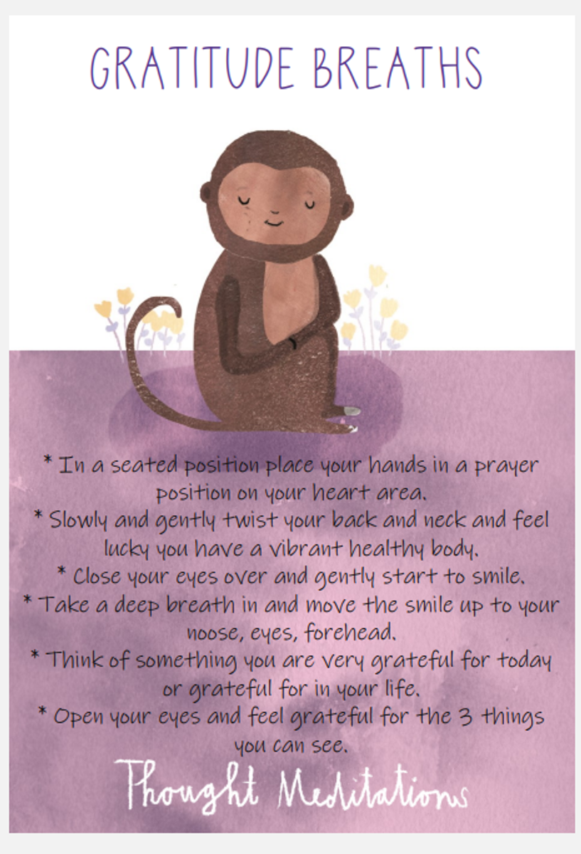 During our 5/10 minutes of mindfulness each day we are focusing on gratitude. Being able to identify things we are grateful for in our lives and our days helps us to have a positive mindset and it trains us to look for the good.
